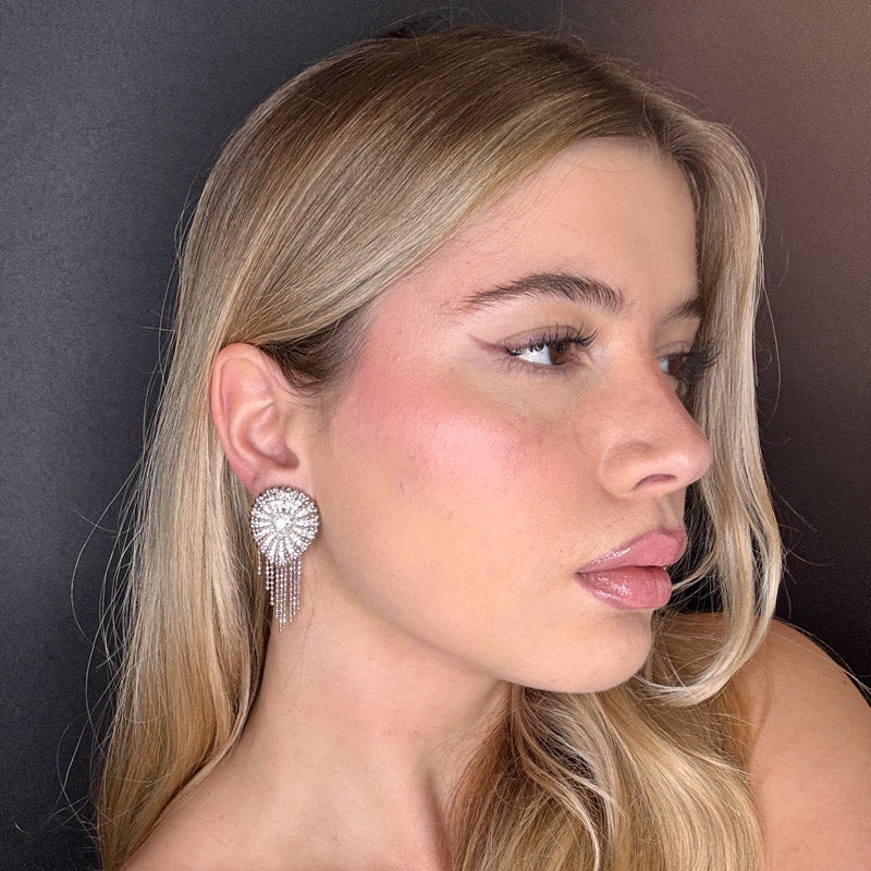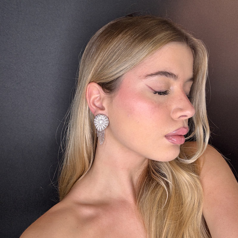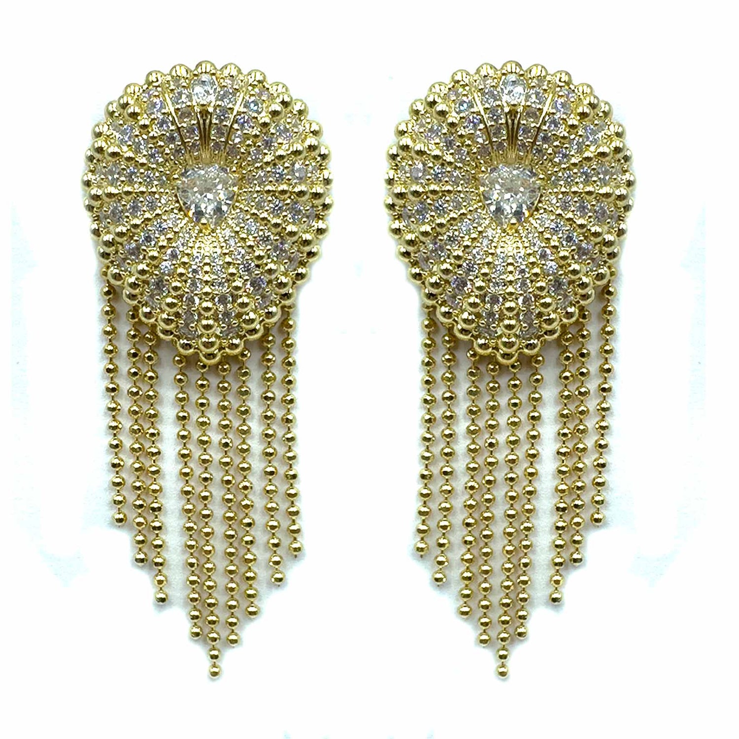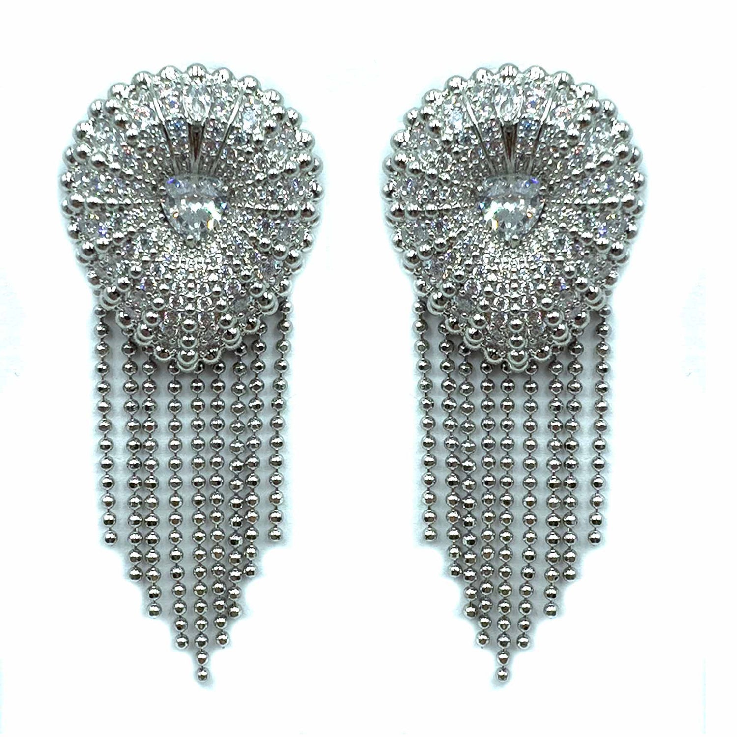 Orecchini pendenti a forma di aquiloni, decorati da pavè e cristalli incastonati, una catenina per la coda, placcati silver