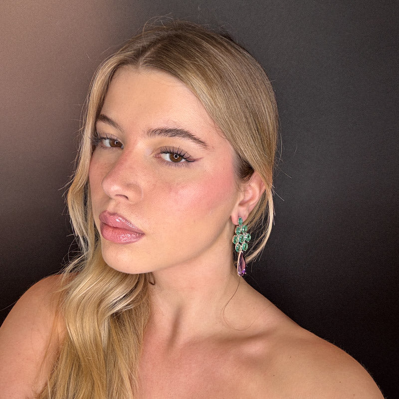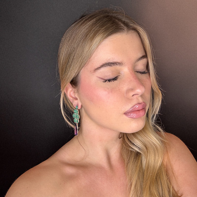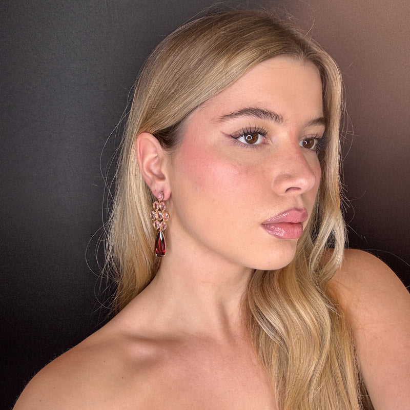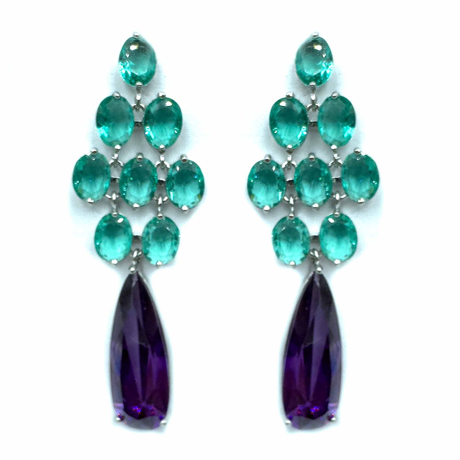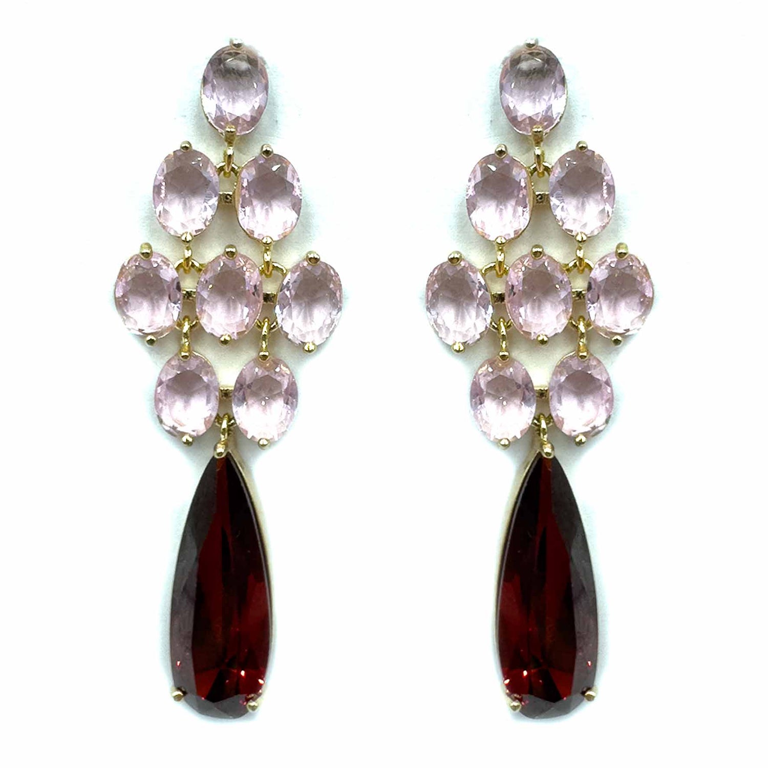 Orecchini pendenti a forma di pietre preziose e colorate, con un cristallo a goccia pendente, placcati gold/silver