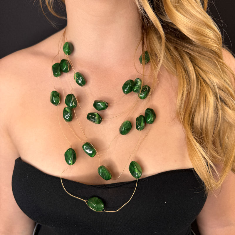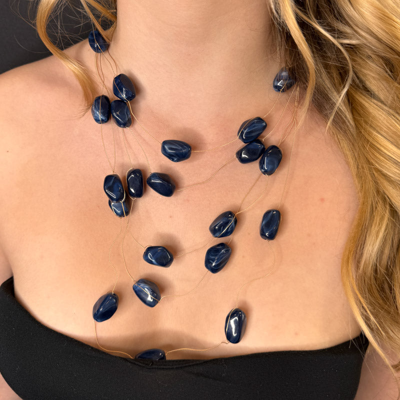 Collana multifili decorata da pietre colorate.