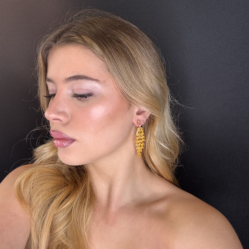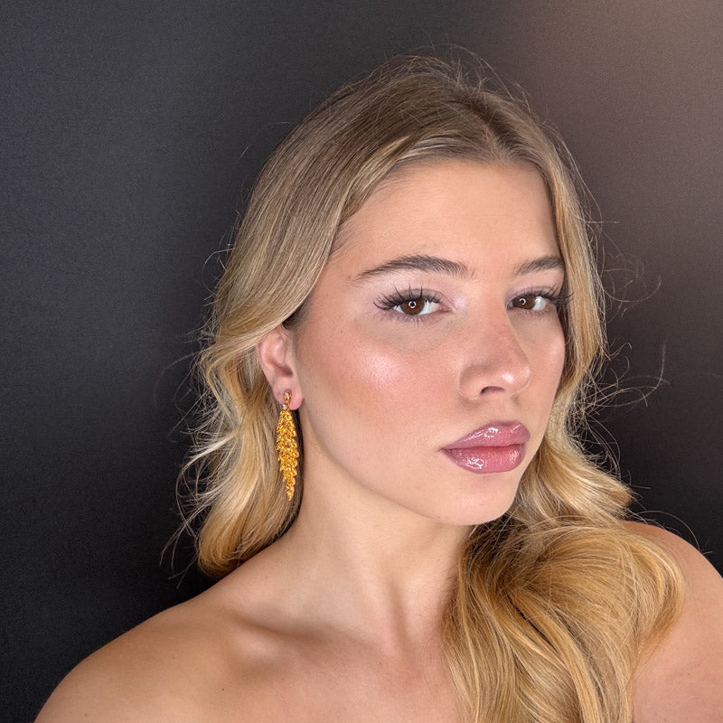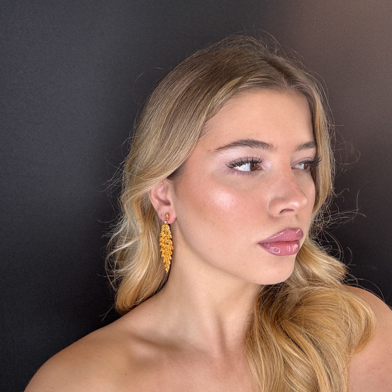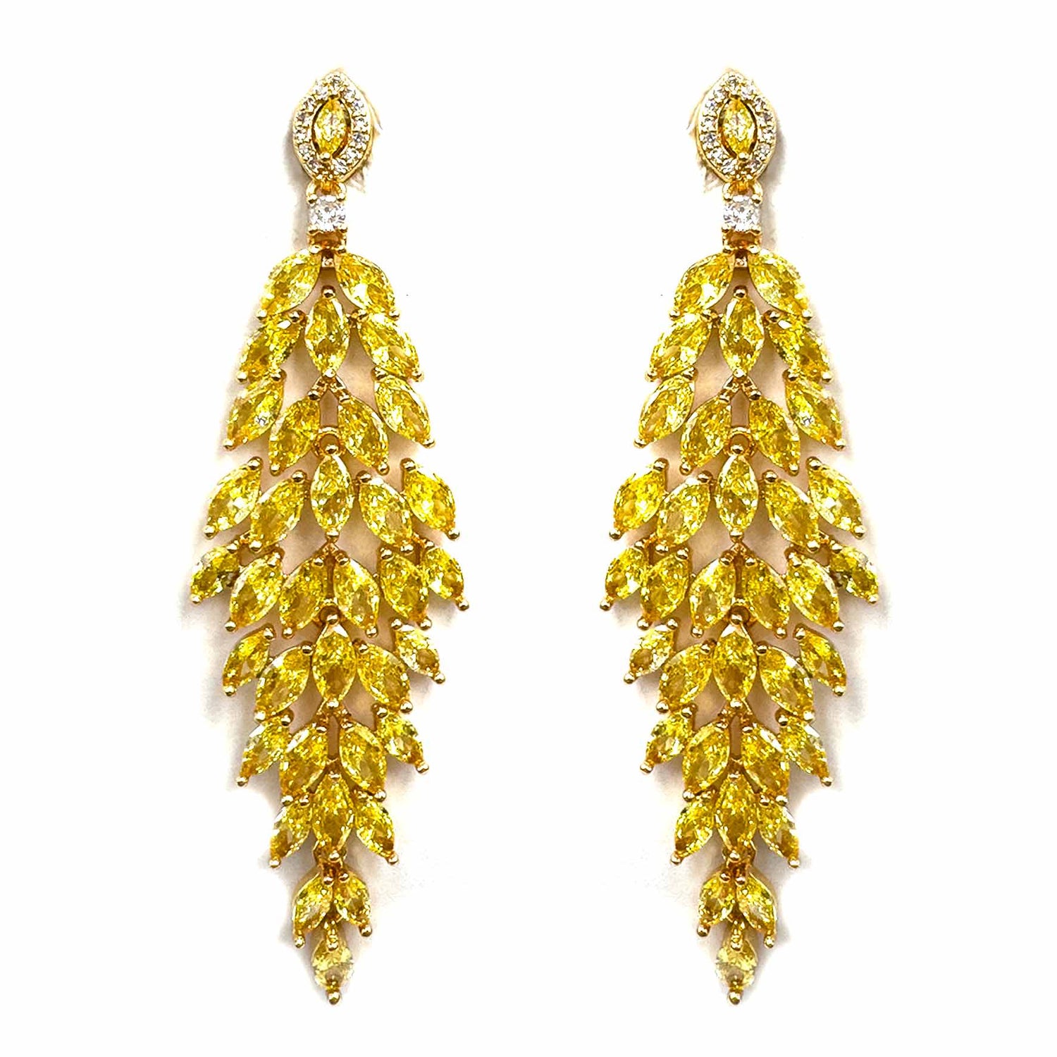 Orecchini pendenti con tripudio di pietre giallo caldo incastonate