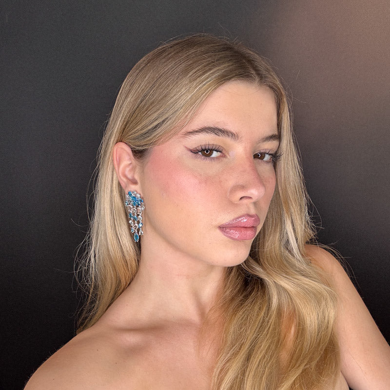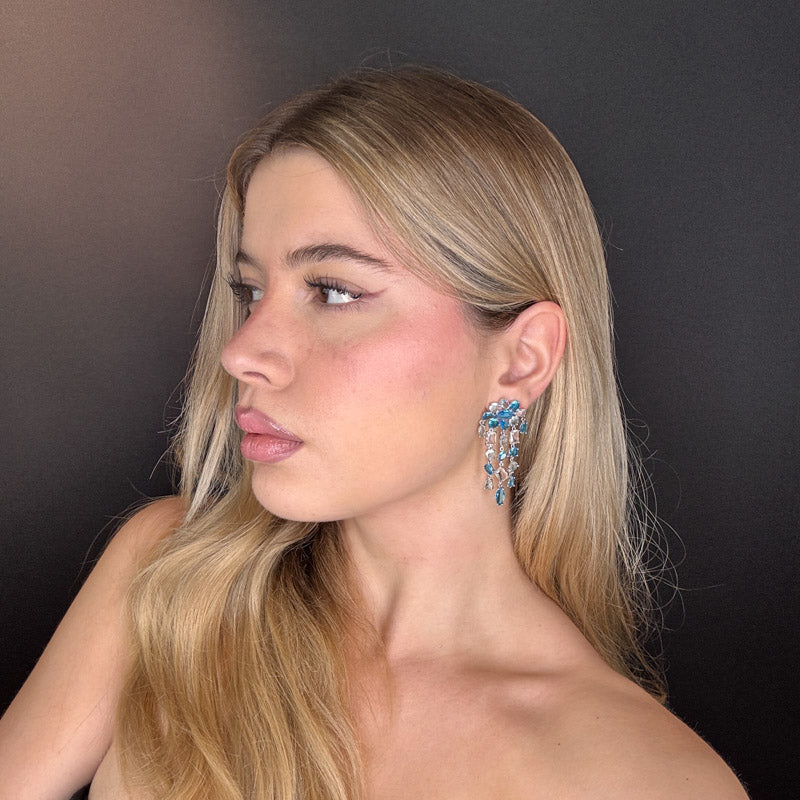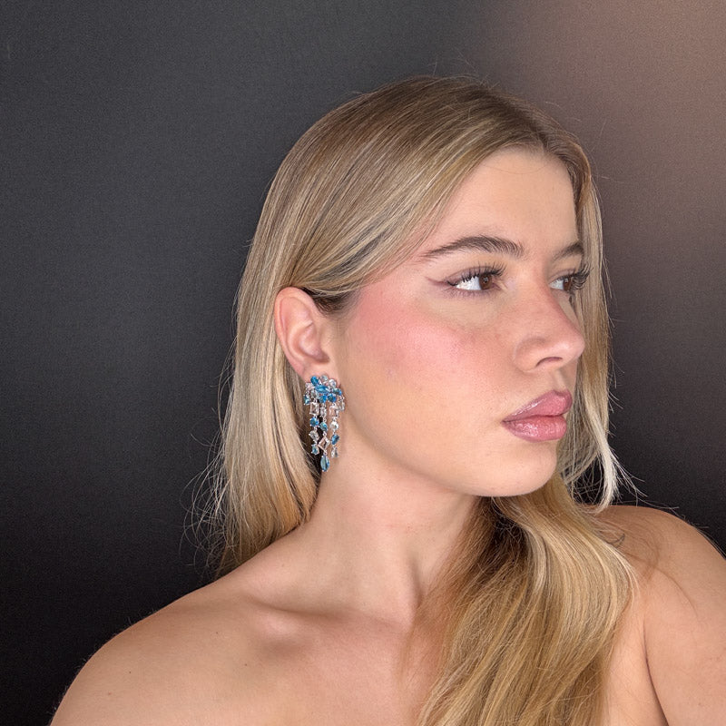 Orecchini pendenti a forma di cascata geometrica gold/silver plated, con cristalli di diverse forme e colori che rendono l'orecchino dinamico perfetto per qualsiasi occasione!