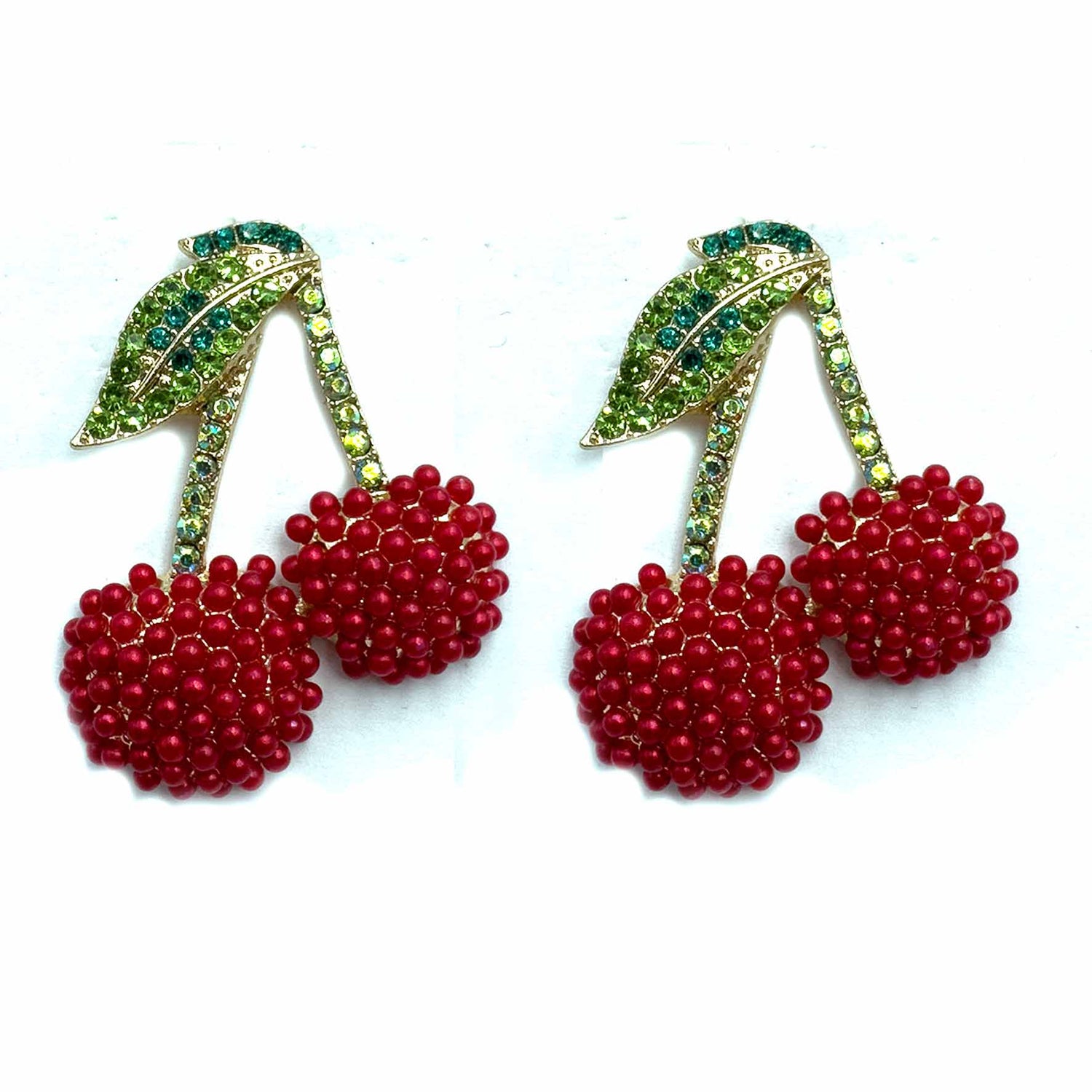Orecchini pendenti a forma di ciliegie, decorati con zirconi e perline colorate, placcati gold