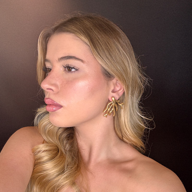 Orecchini a forma di coralli in questa versione con superficie placcata oro.