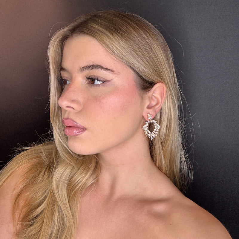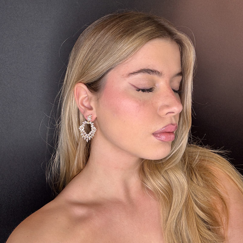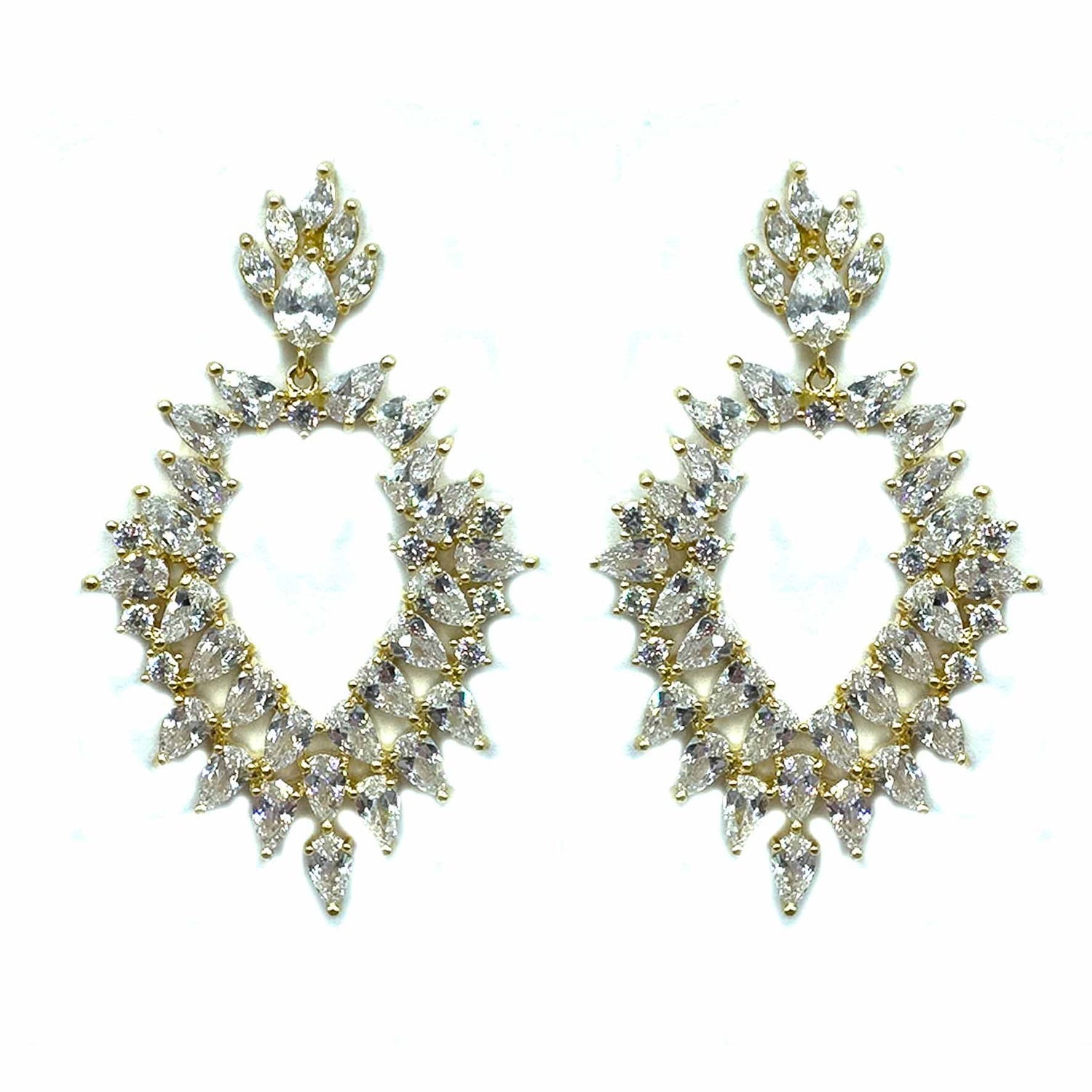 Orecchini pendenti a forma di cornice di cristalli, placcati gold