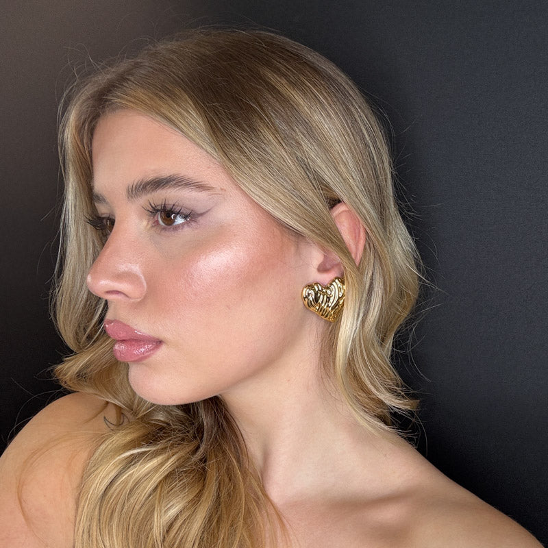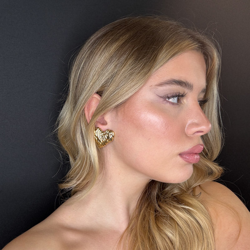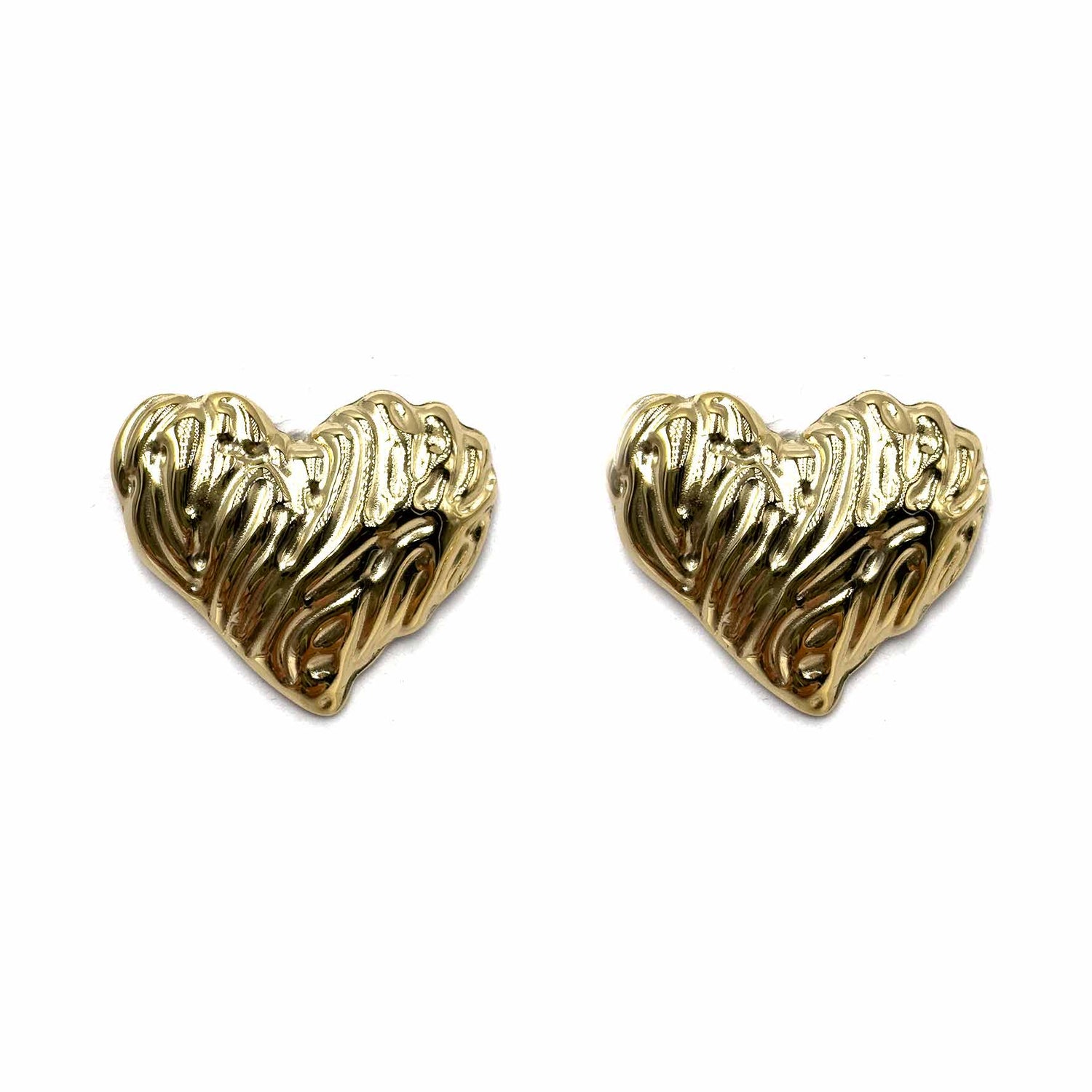 Orecchini a forma di cuore con struttura in ottone gold plated in versione big