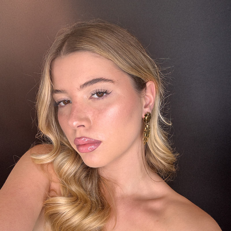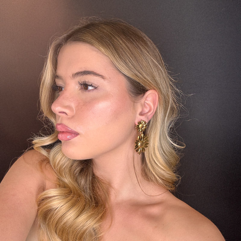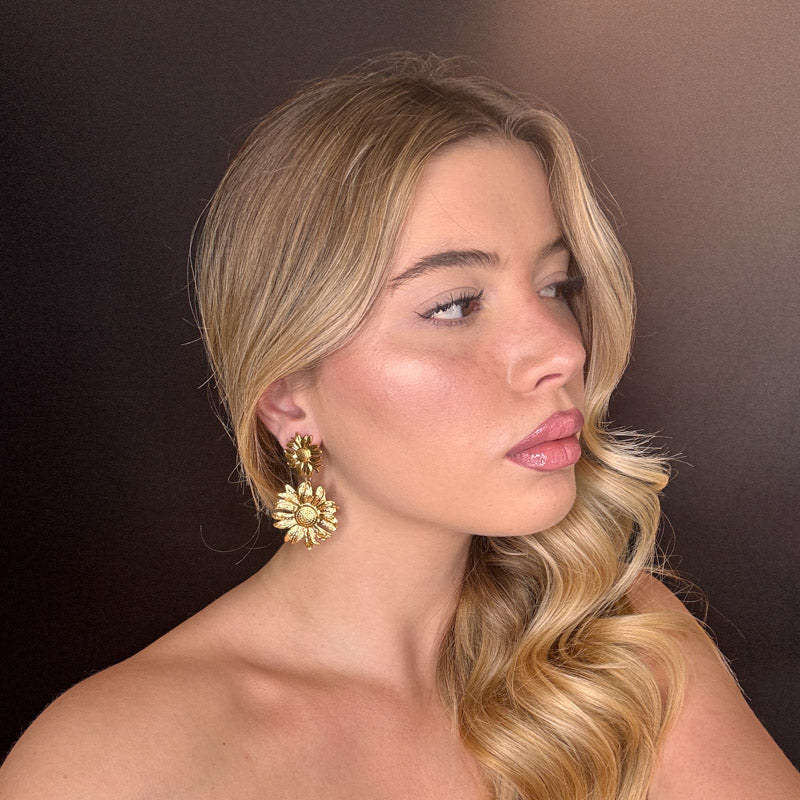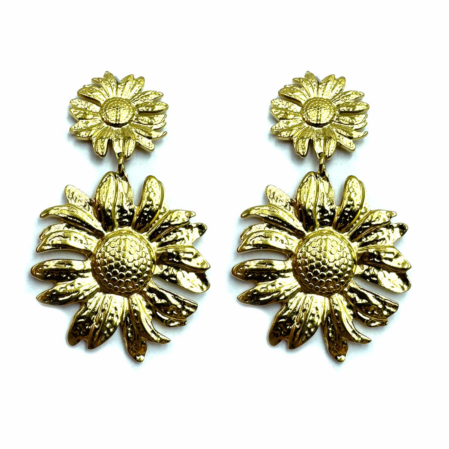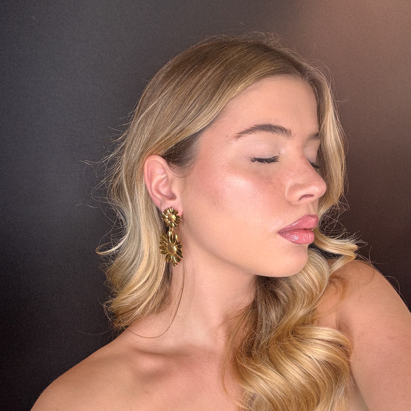 Orecchini a forma di doppio girasole, struttura gold plated.