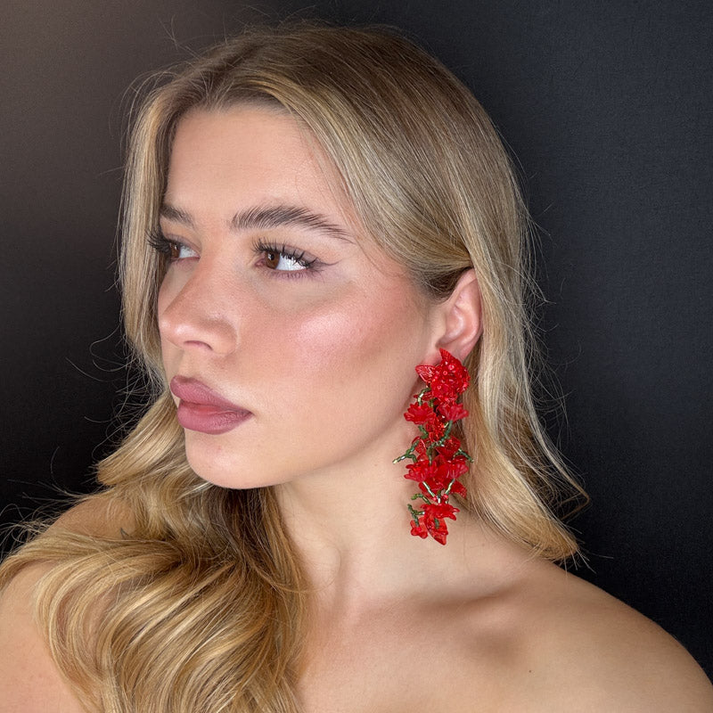 Orecchini con tripudio di fiori di cristallo e pietre colorate con cuore pendente color champagne. Un modello importante e che si fa notare, che lascia senza parole. 😍