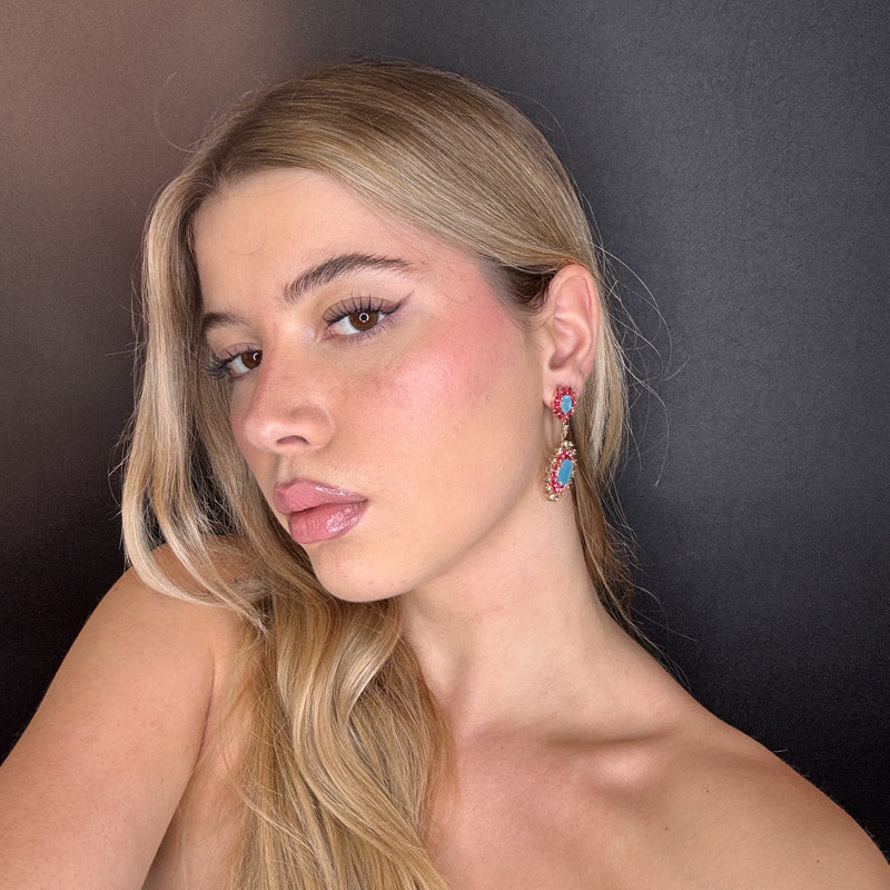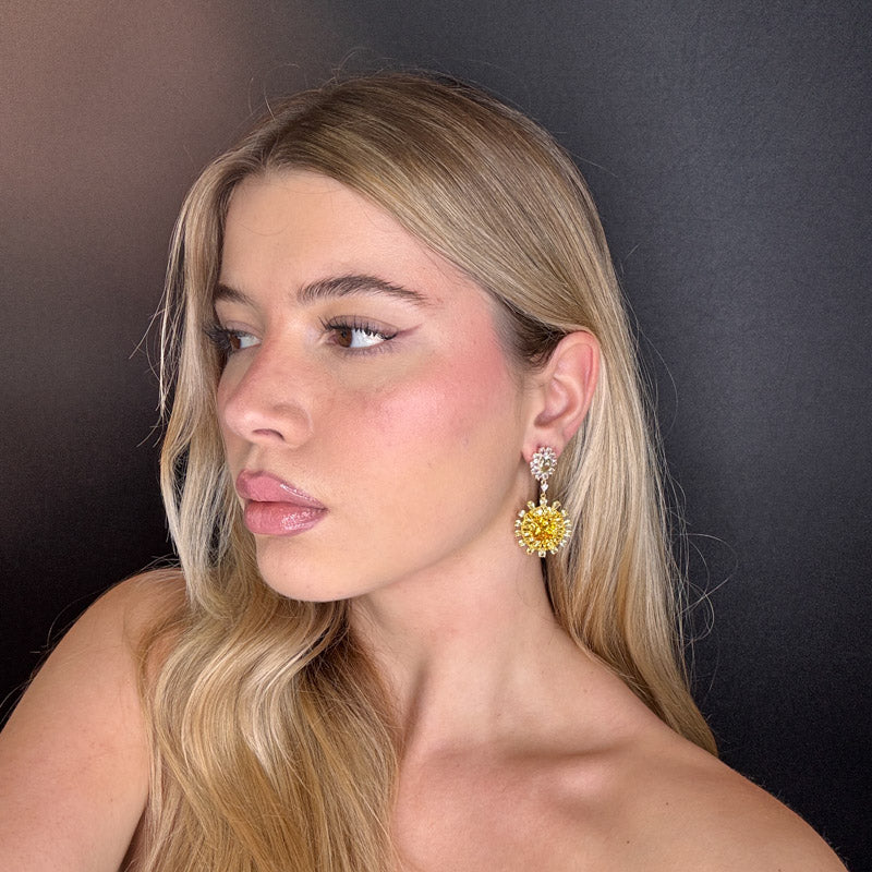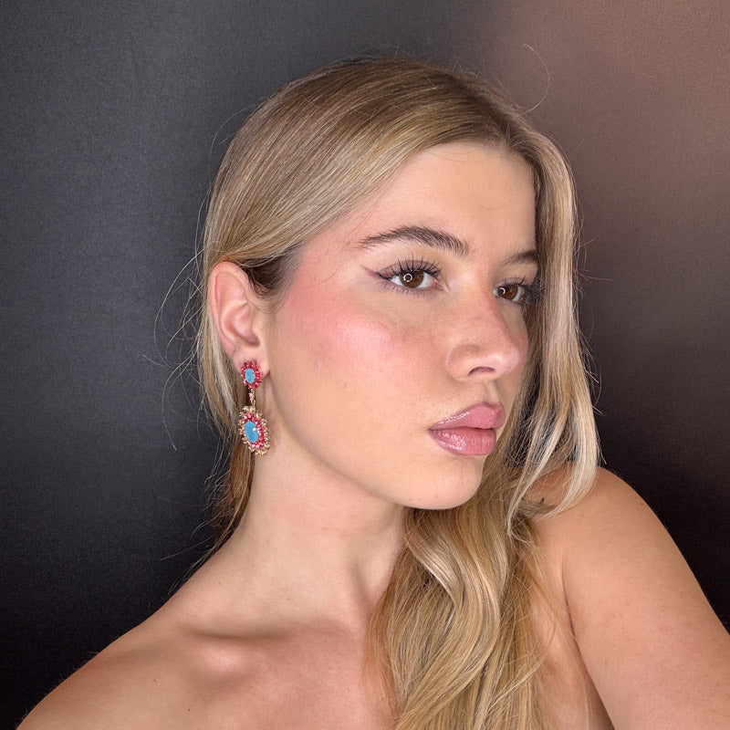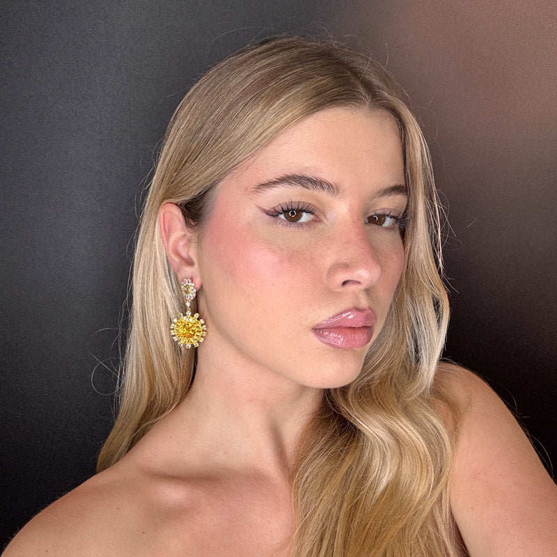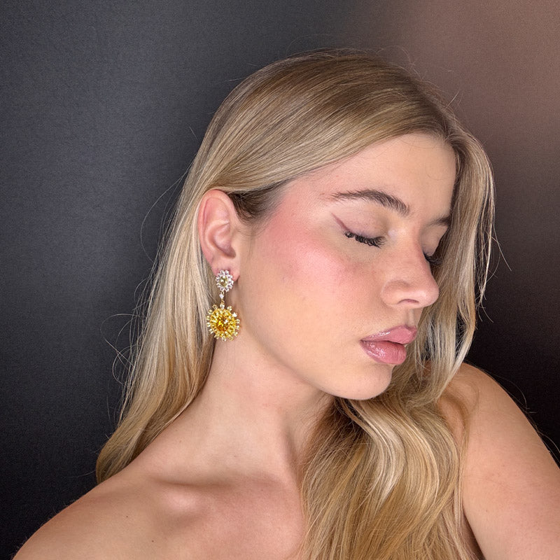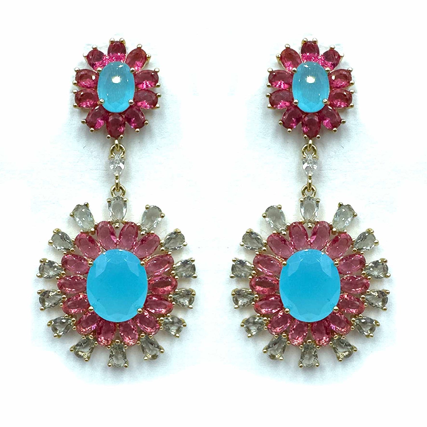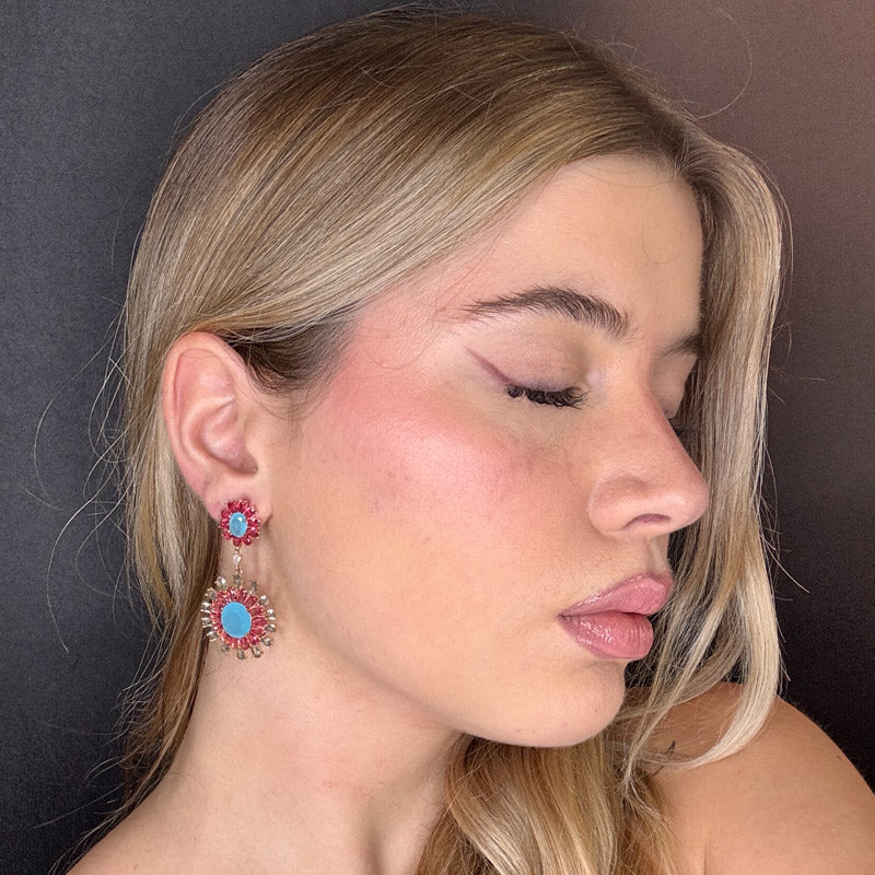 Orecchini pendenti a forma di fiori, decorati da cristalli colorati incastonati, placcati gold