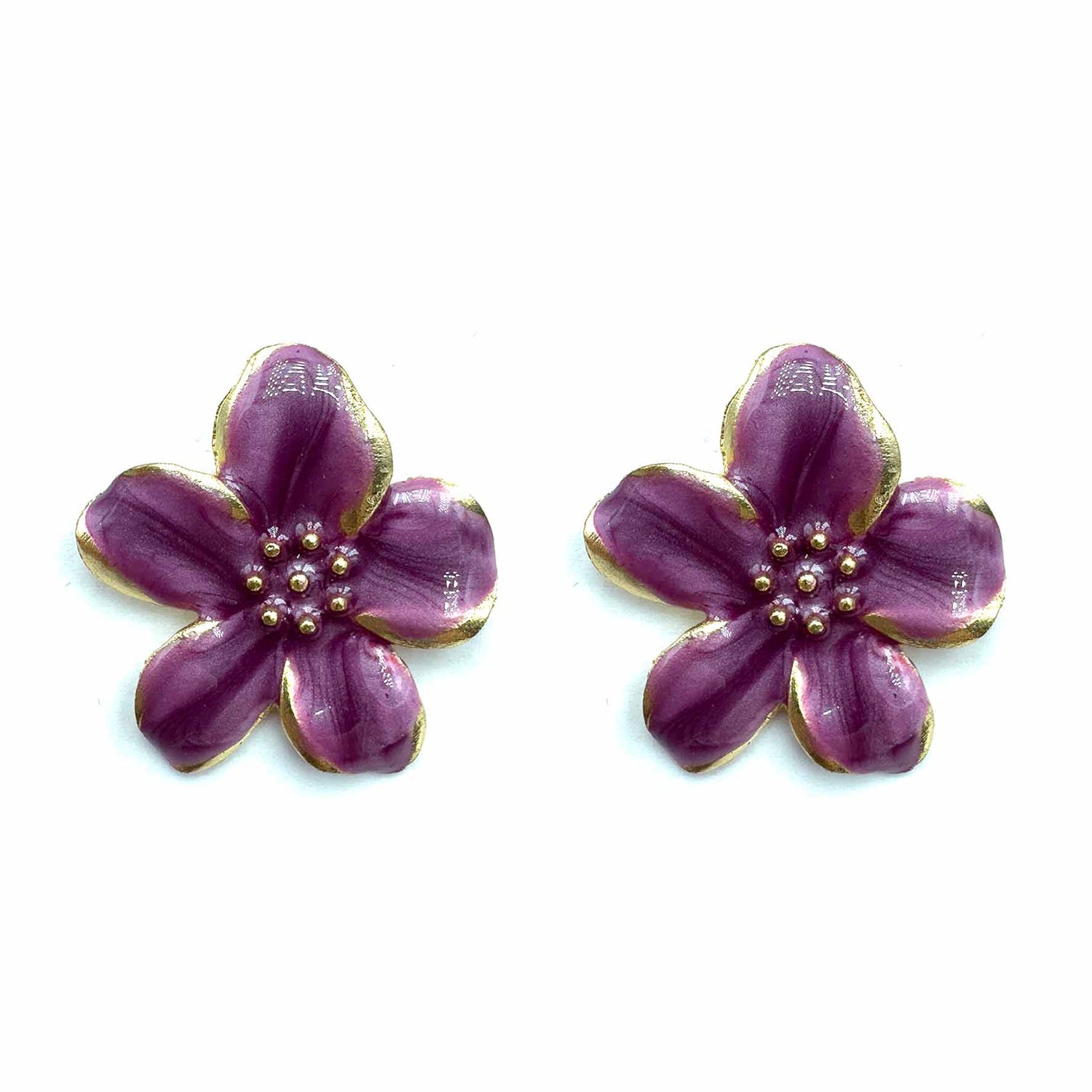 Orecchini pendenti a forma di fiori con base gold plated e superficie smaltata in diversi colori