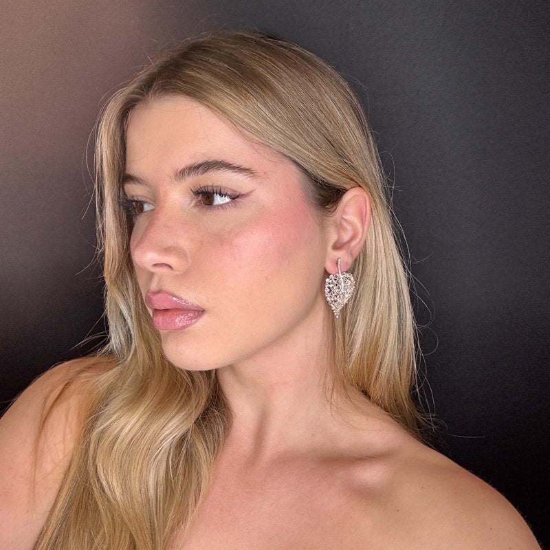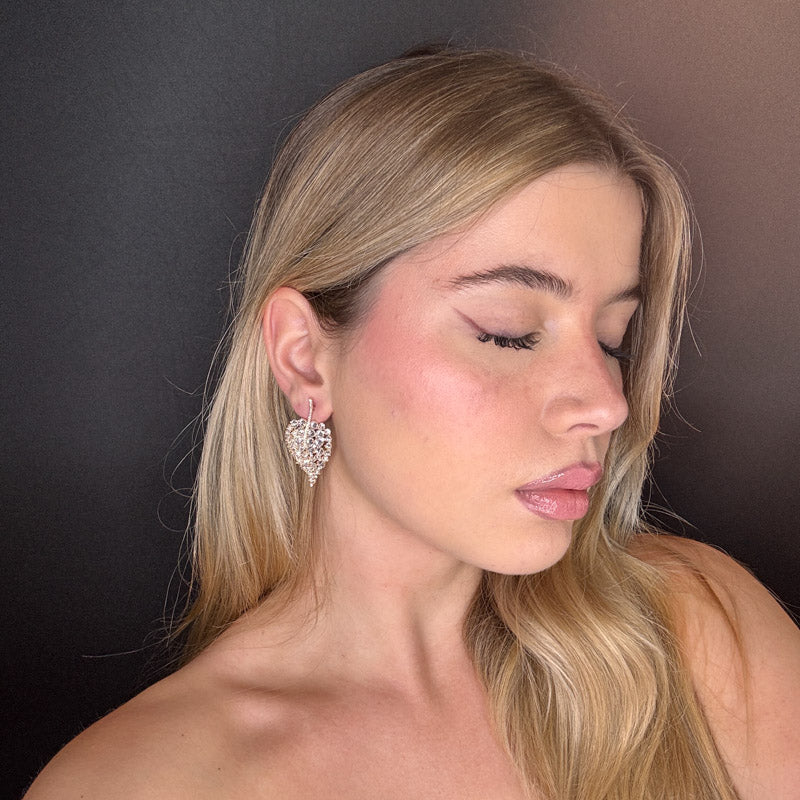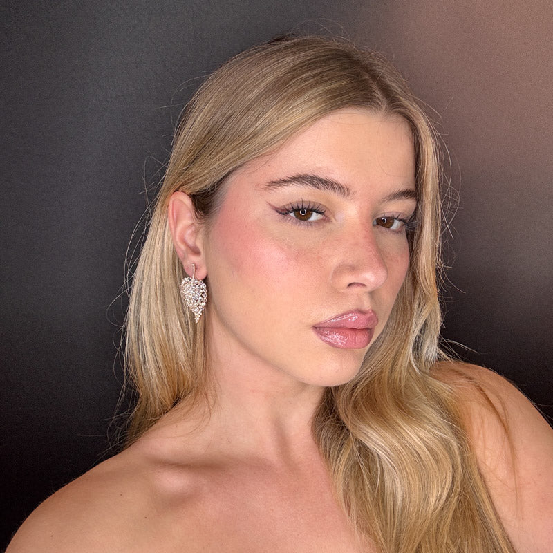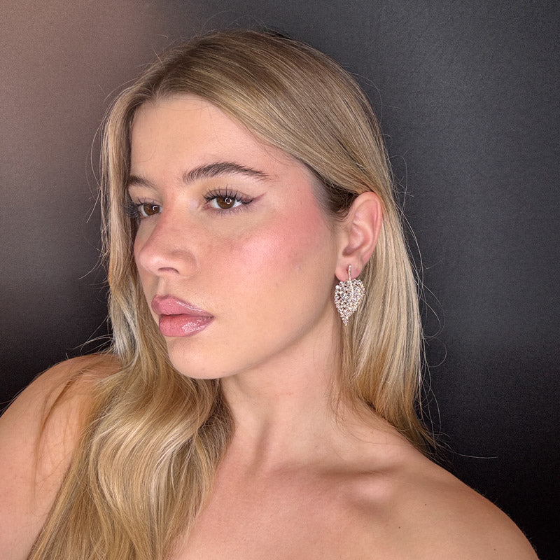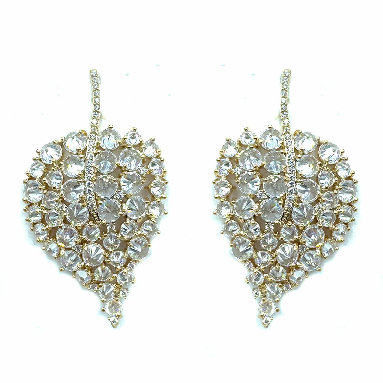 Orecchini pendenti a forma di foglia sempreverde composta di pietre cristallo, placcati gold