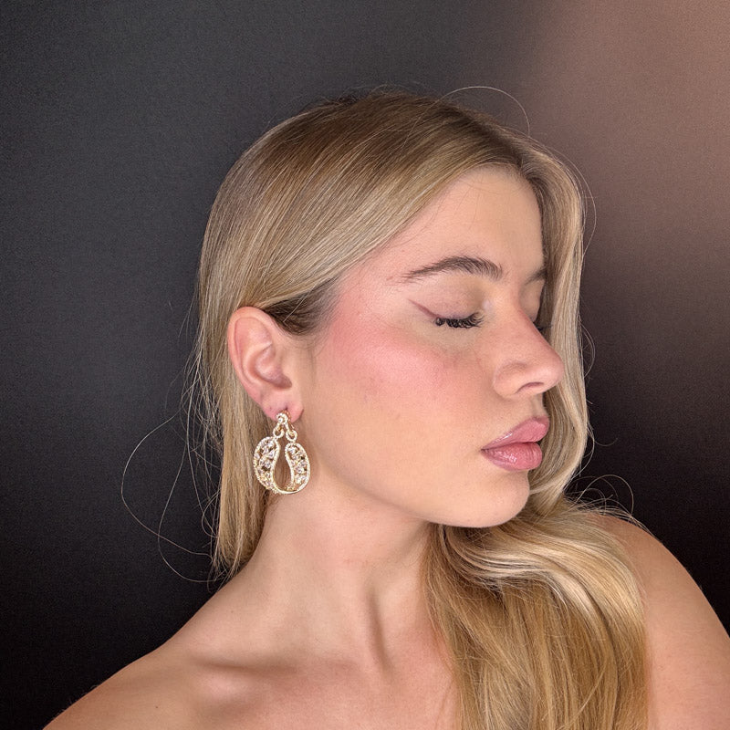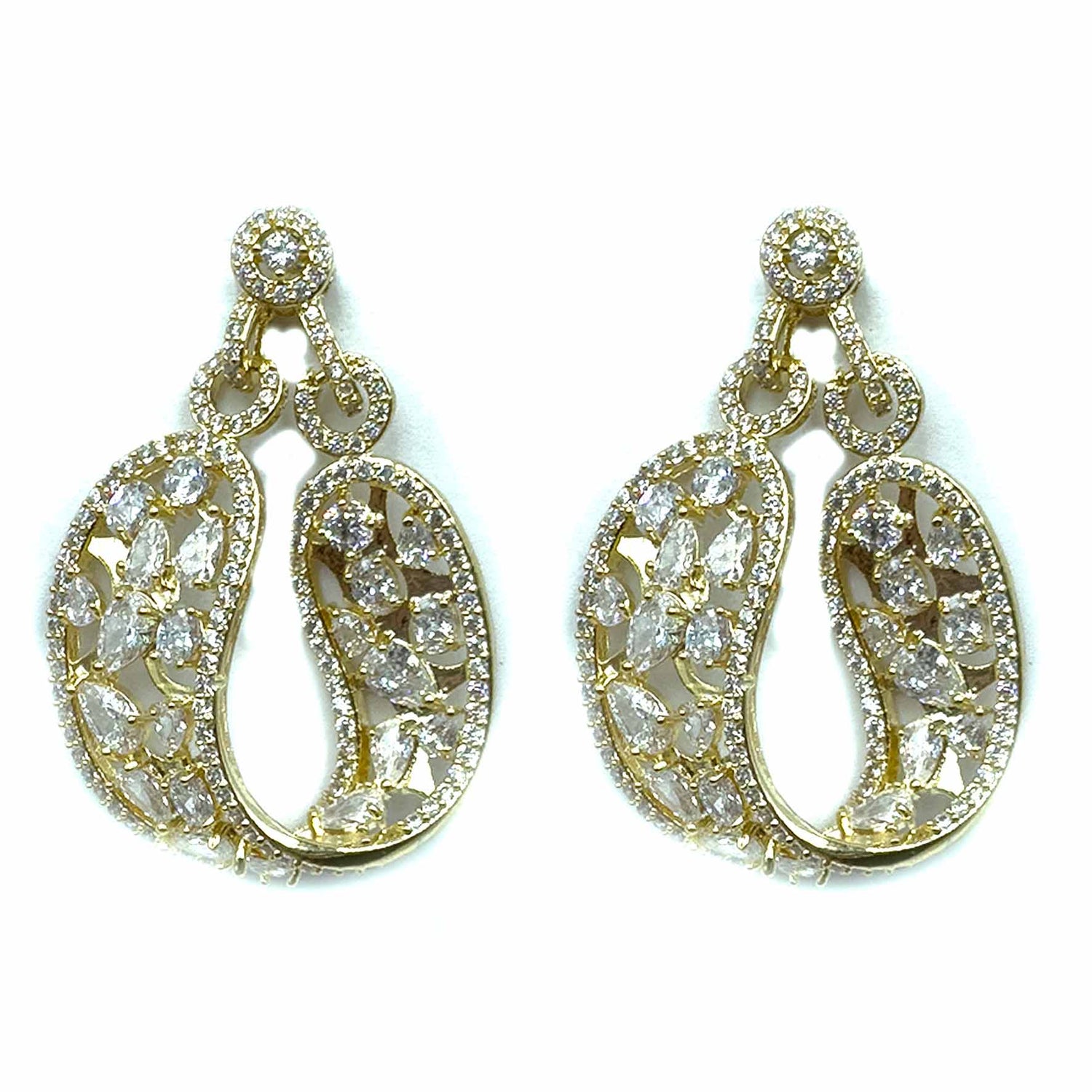 Orecchini a forma di ovale pendente, con cristalli incastonati e pavè, con struttura gold plated