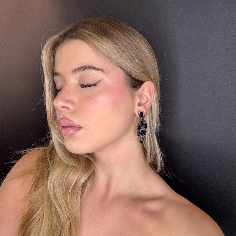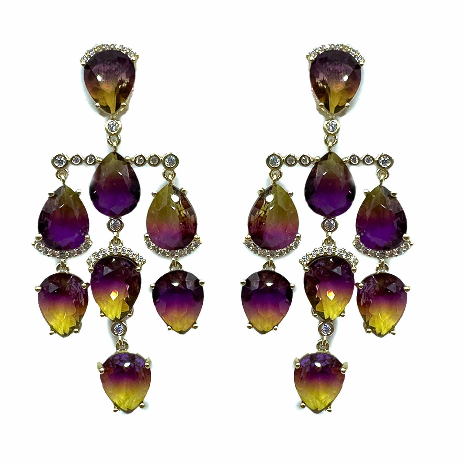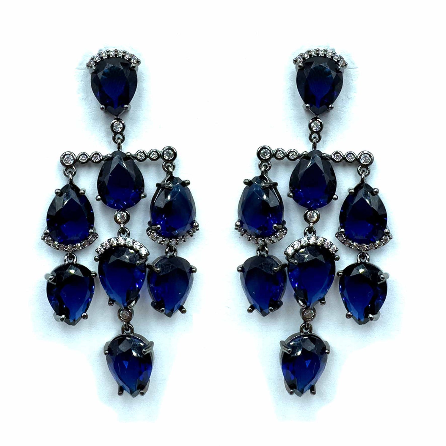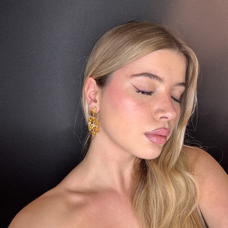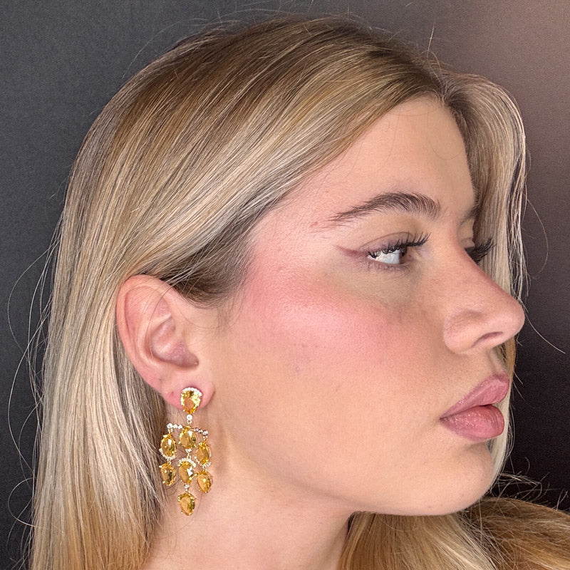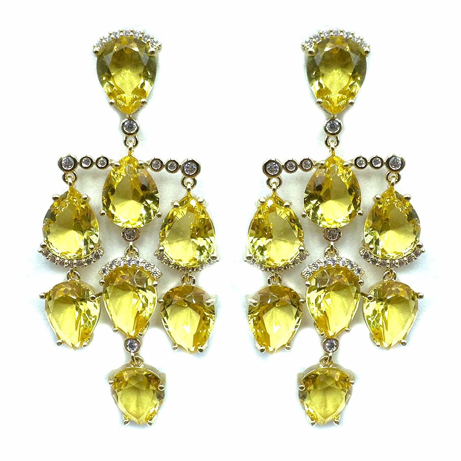 Orecchini pendenti a forma di gocce di cristallo a cascata, decorati da pavè incastonati, placcati gold/silver