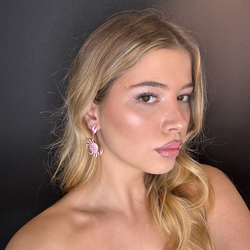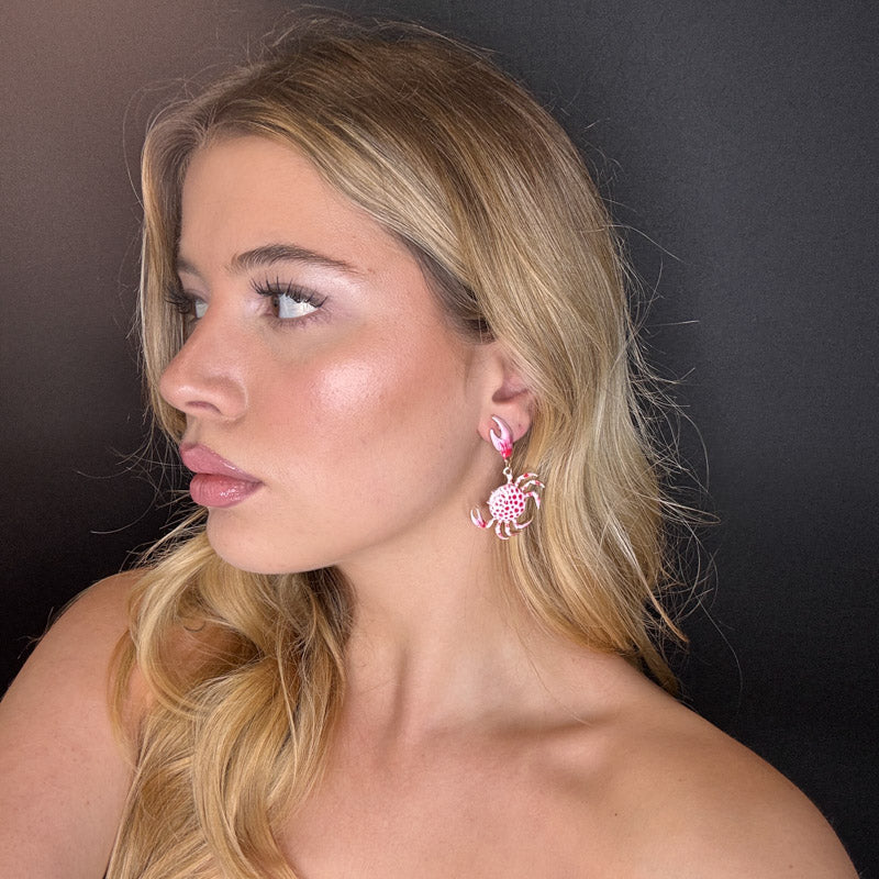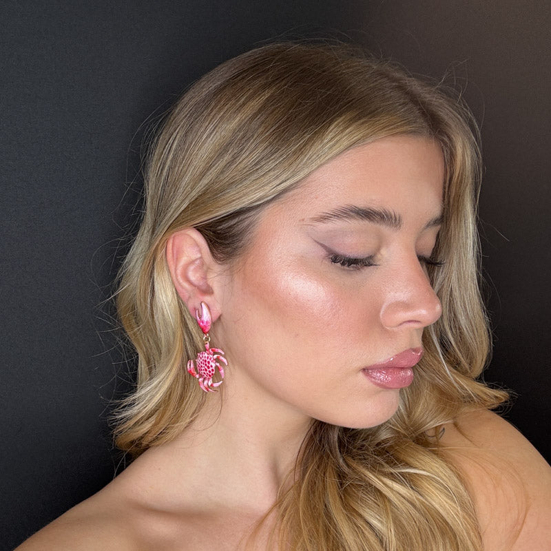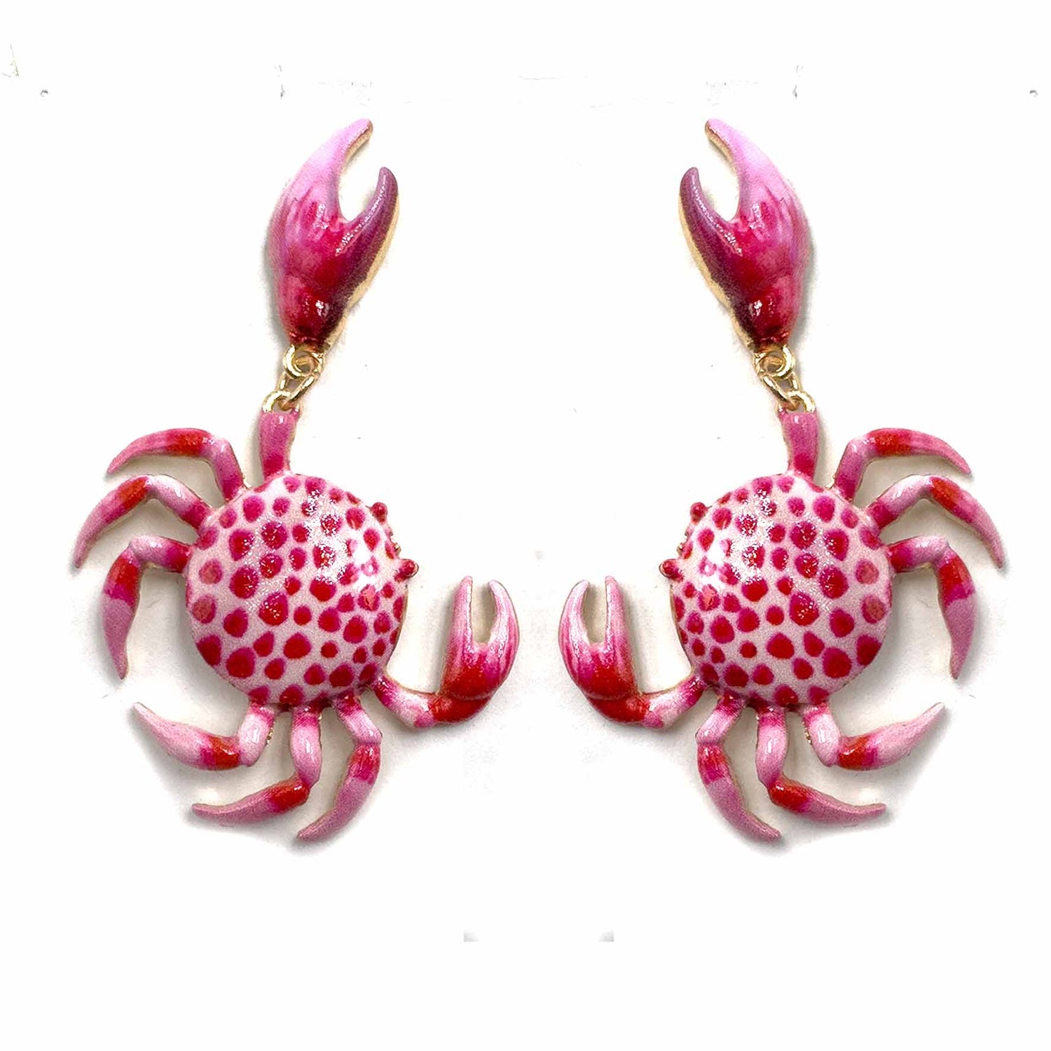 Orecchini pendenti a forma di granchio con base gold plated e smaltati in superficie