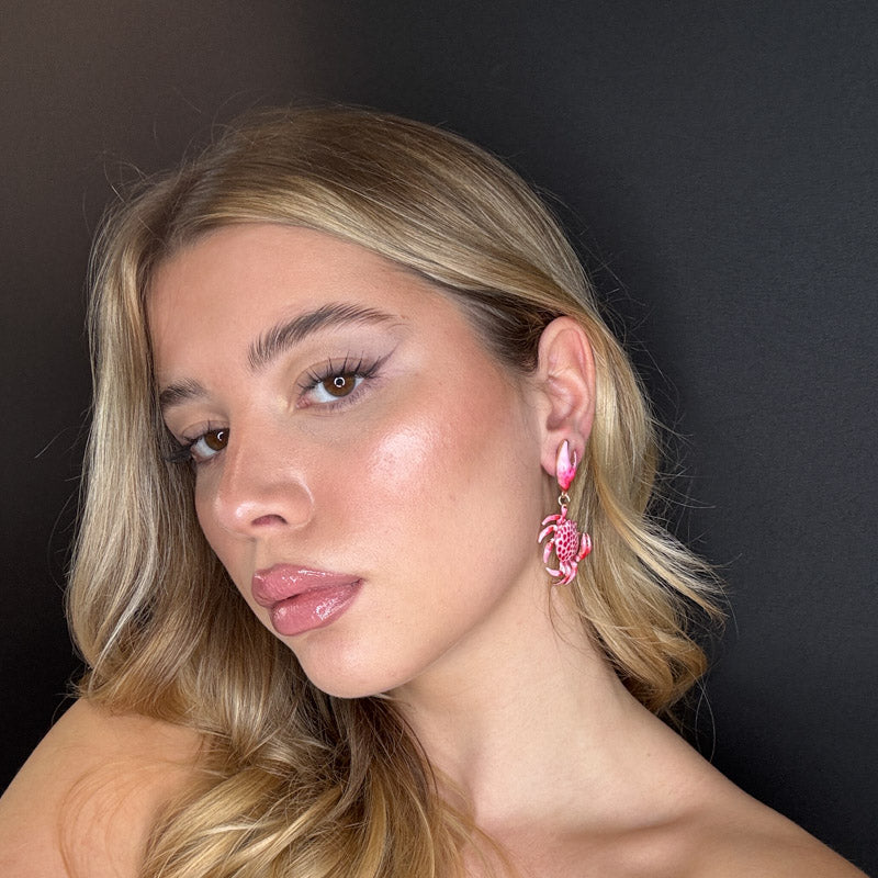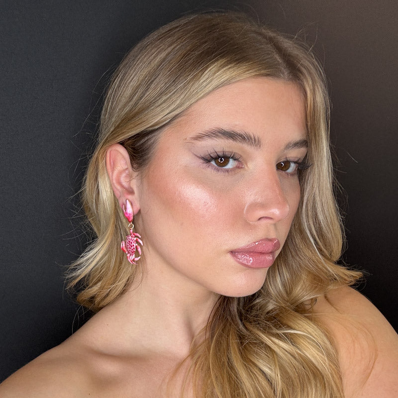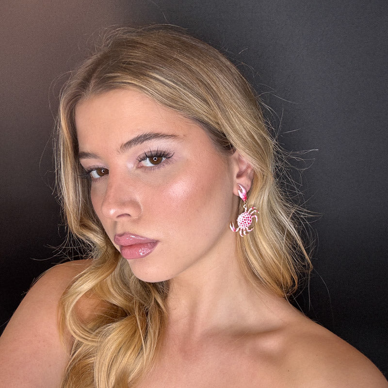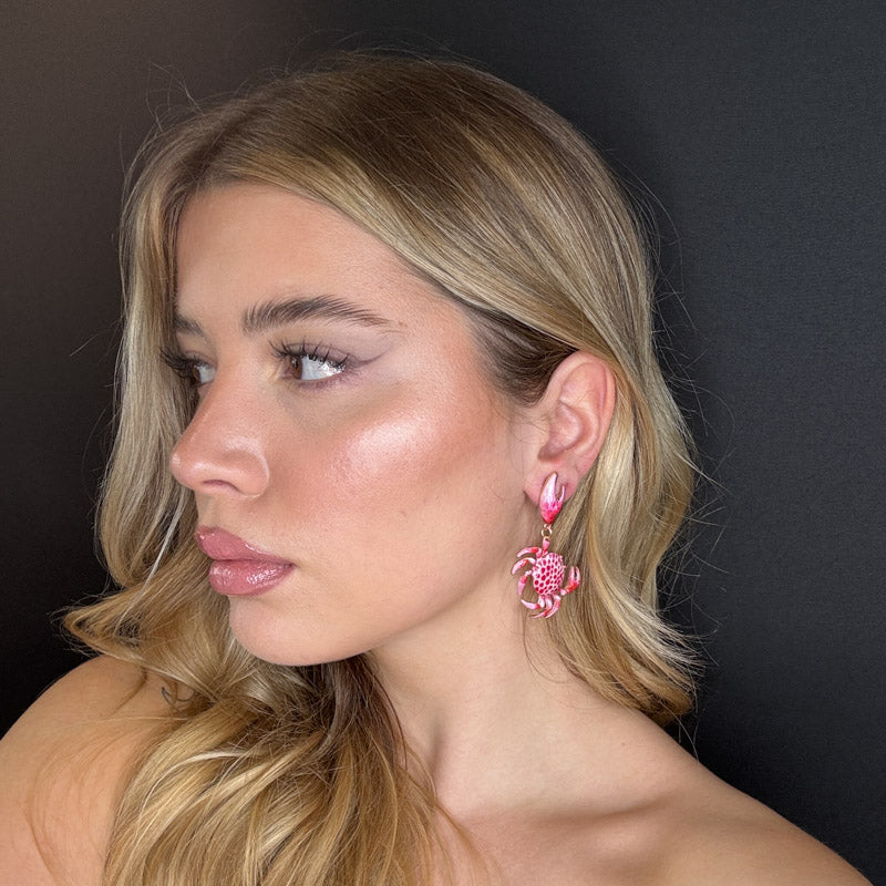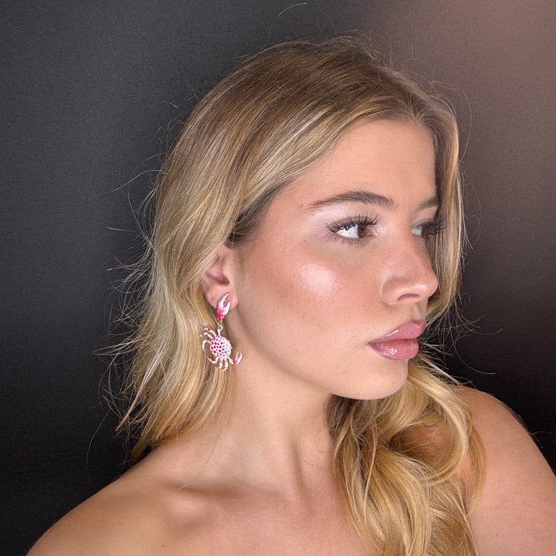 Orecchini pendenti a forma di granchio con base gold plated e smaltati in superficie