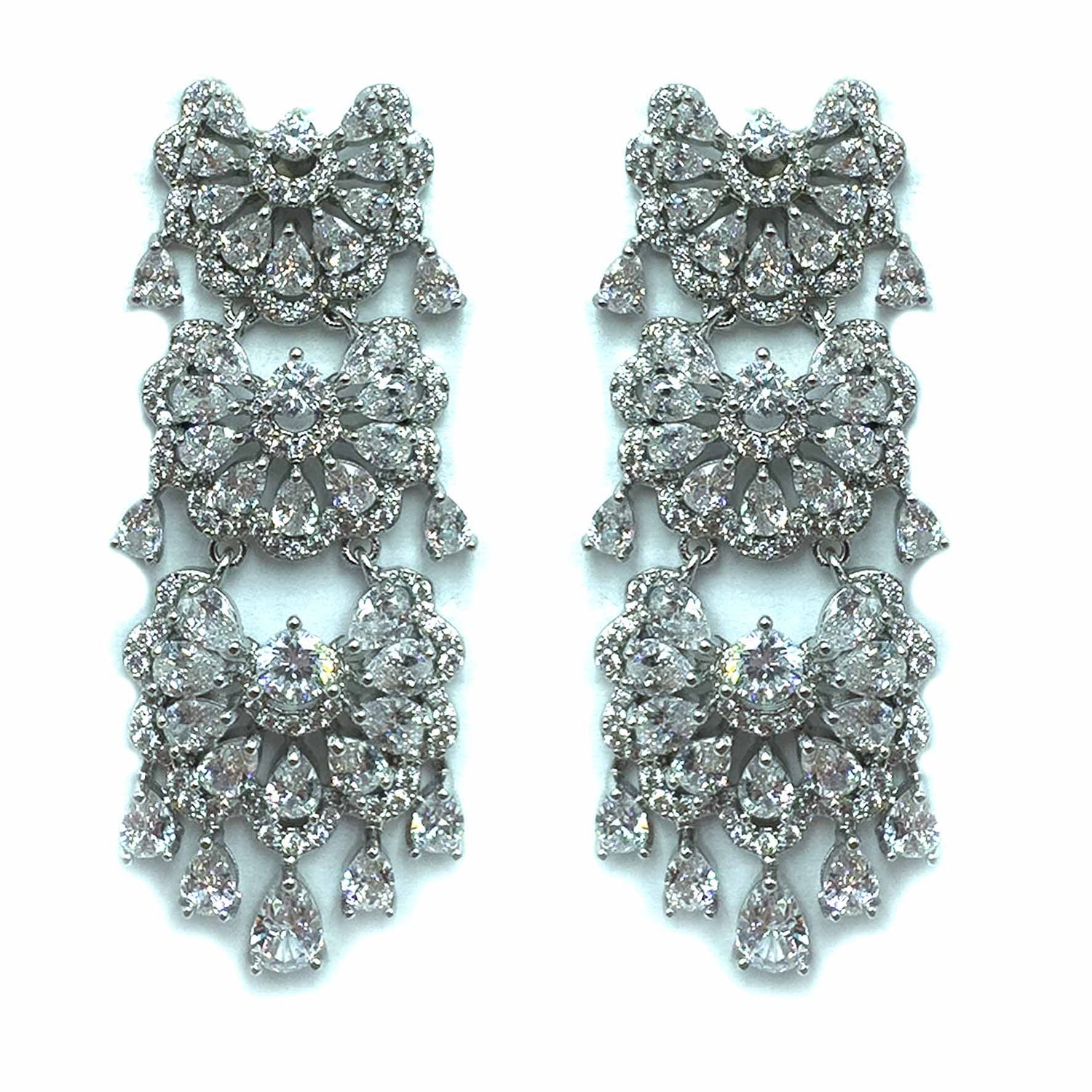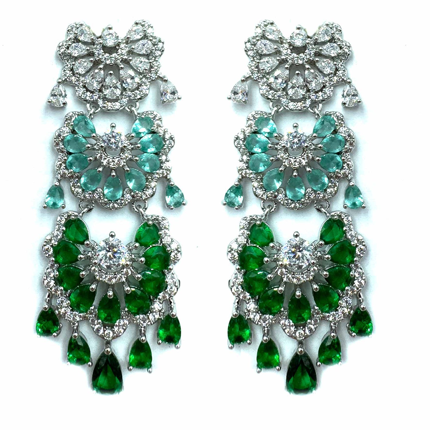 Orecchini pendenti a forma di composizione incantevole di cristalli di sfumature verdi, placcati silver
