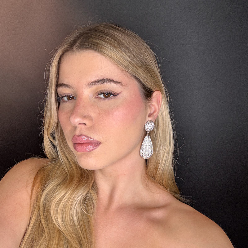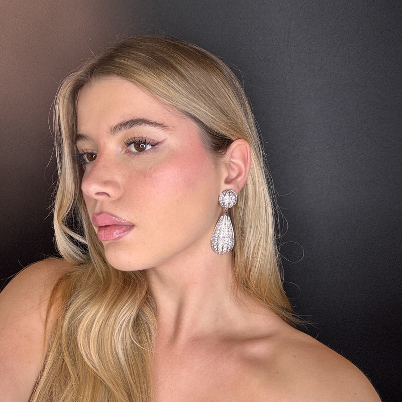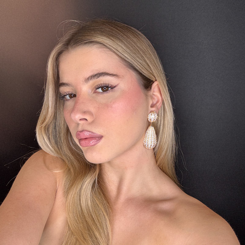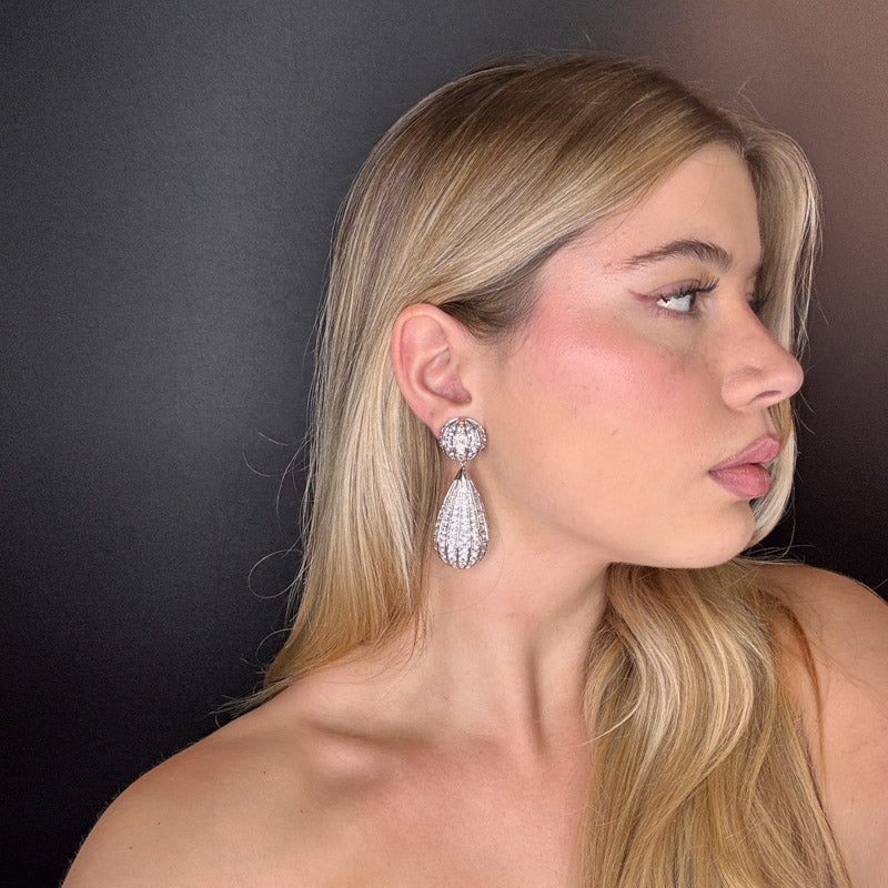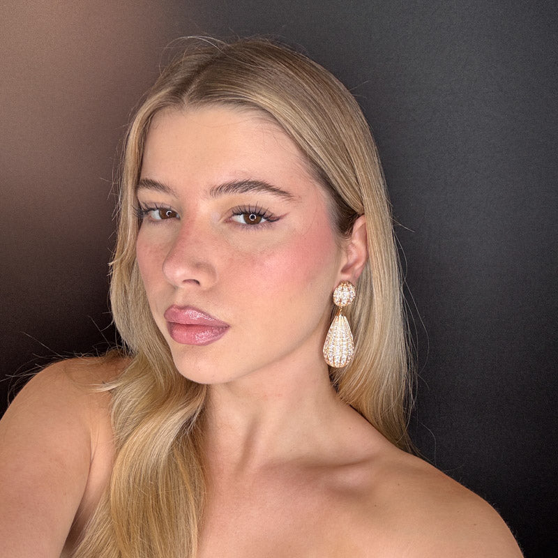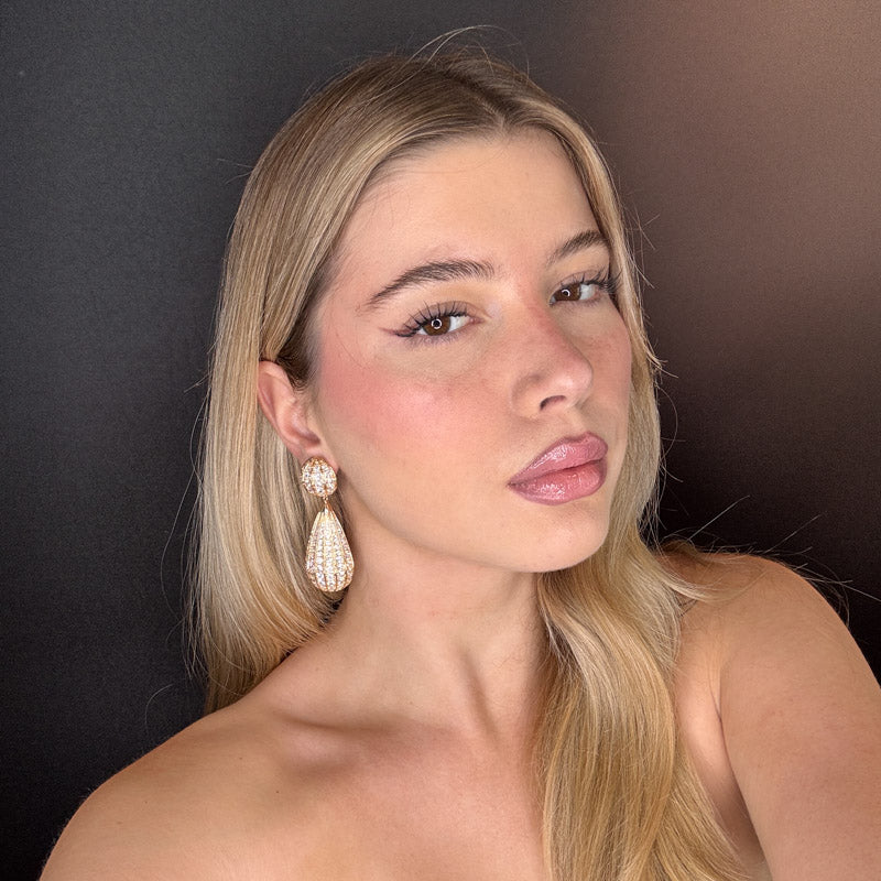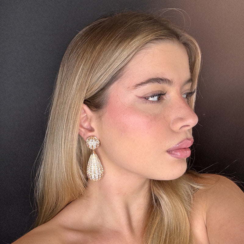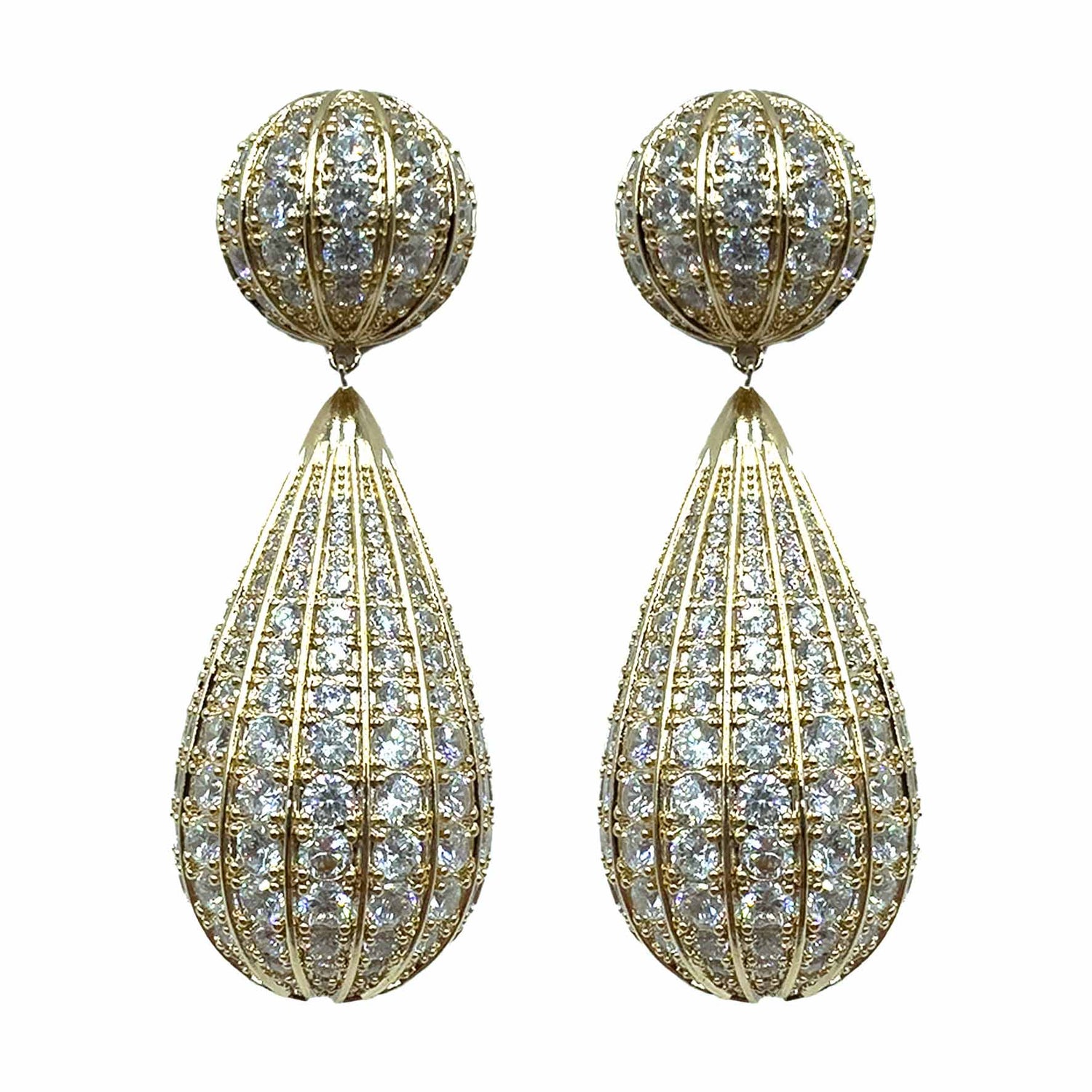 Orecchini pendenti a forma di palloncino, con zirconi cristallo incastonati, gold/silver plated