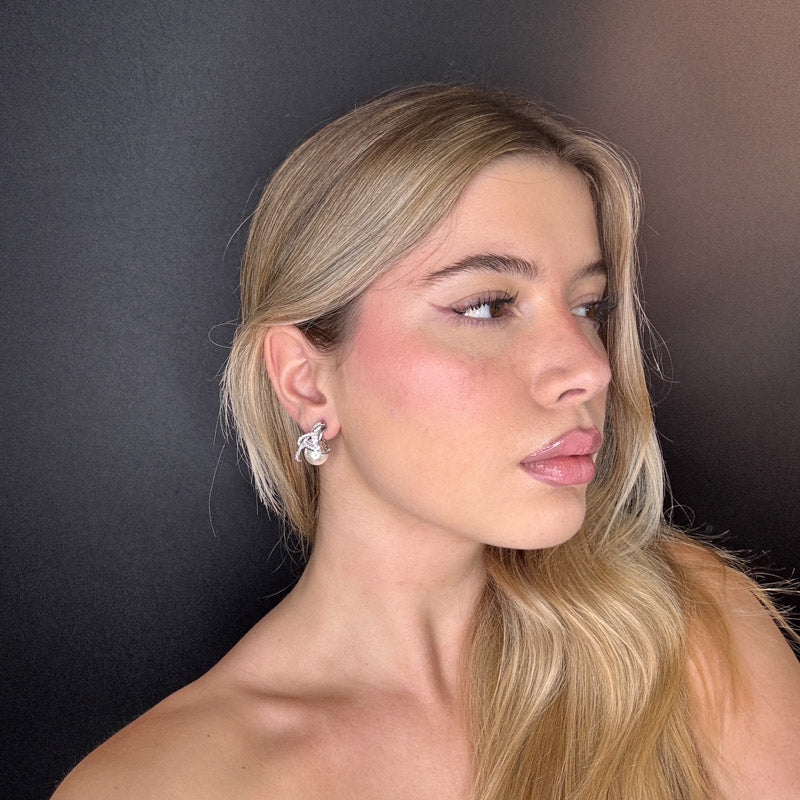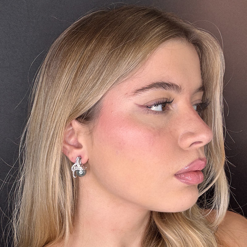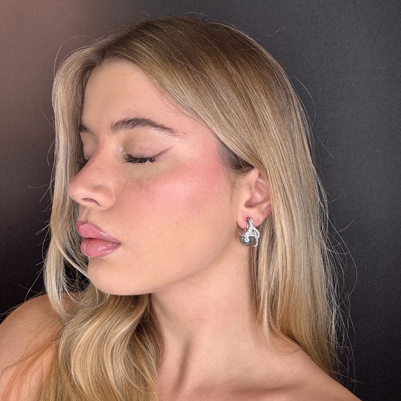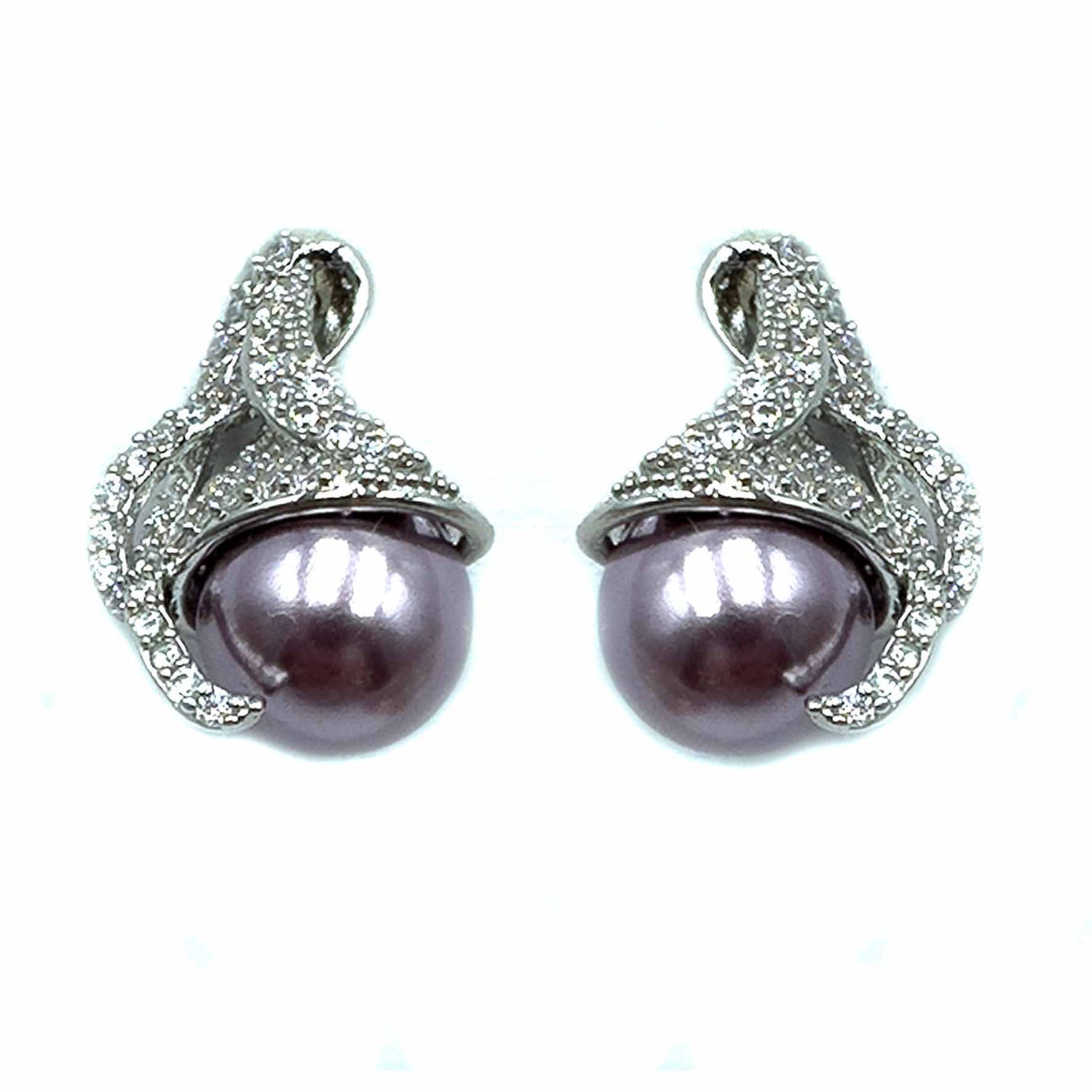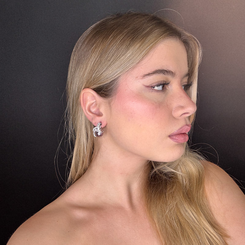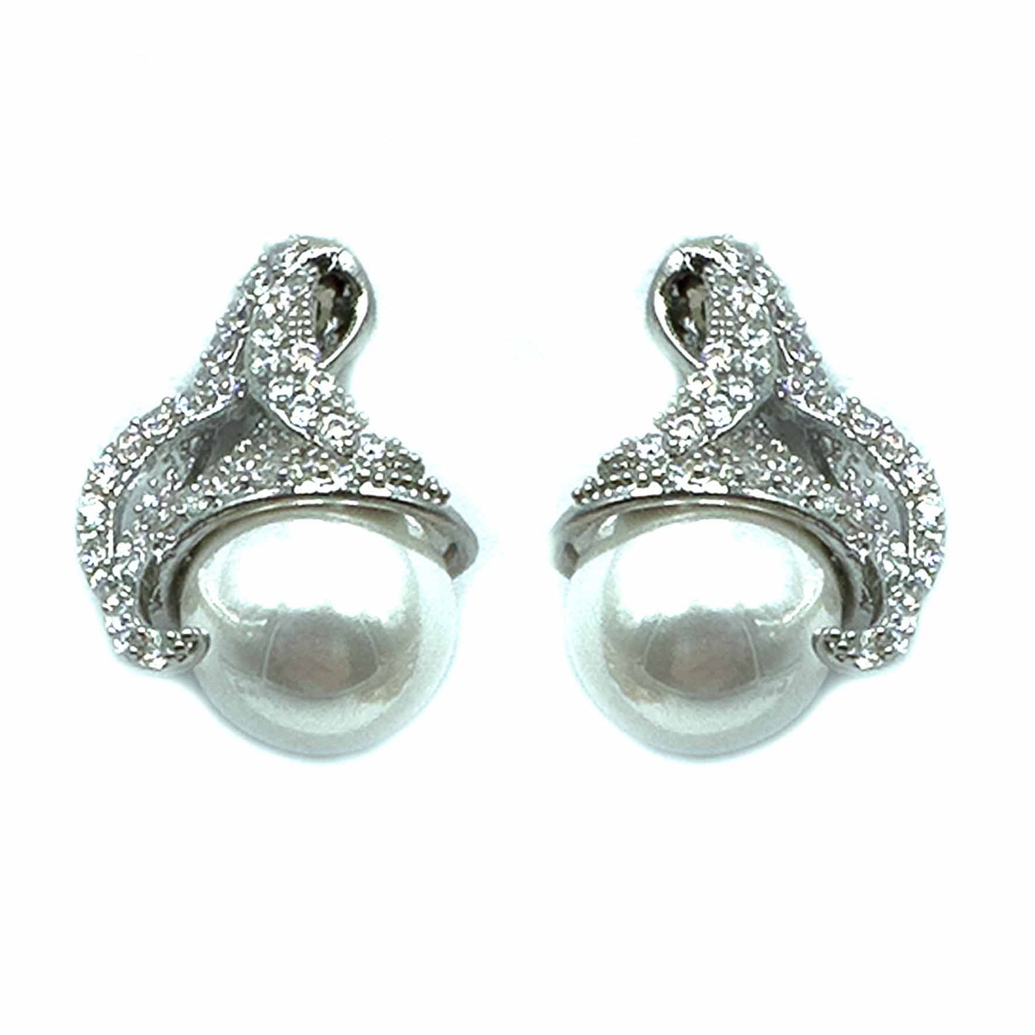 Orecchini pendenti a forma di perlina con ricciolo di pavè, placcati silver