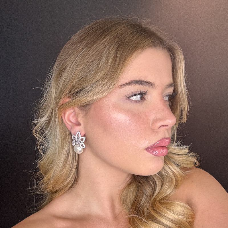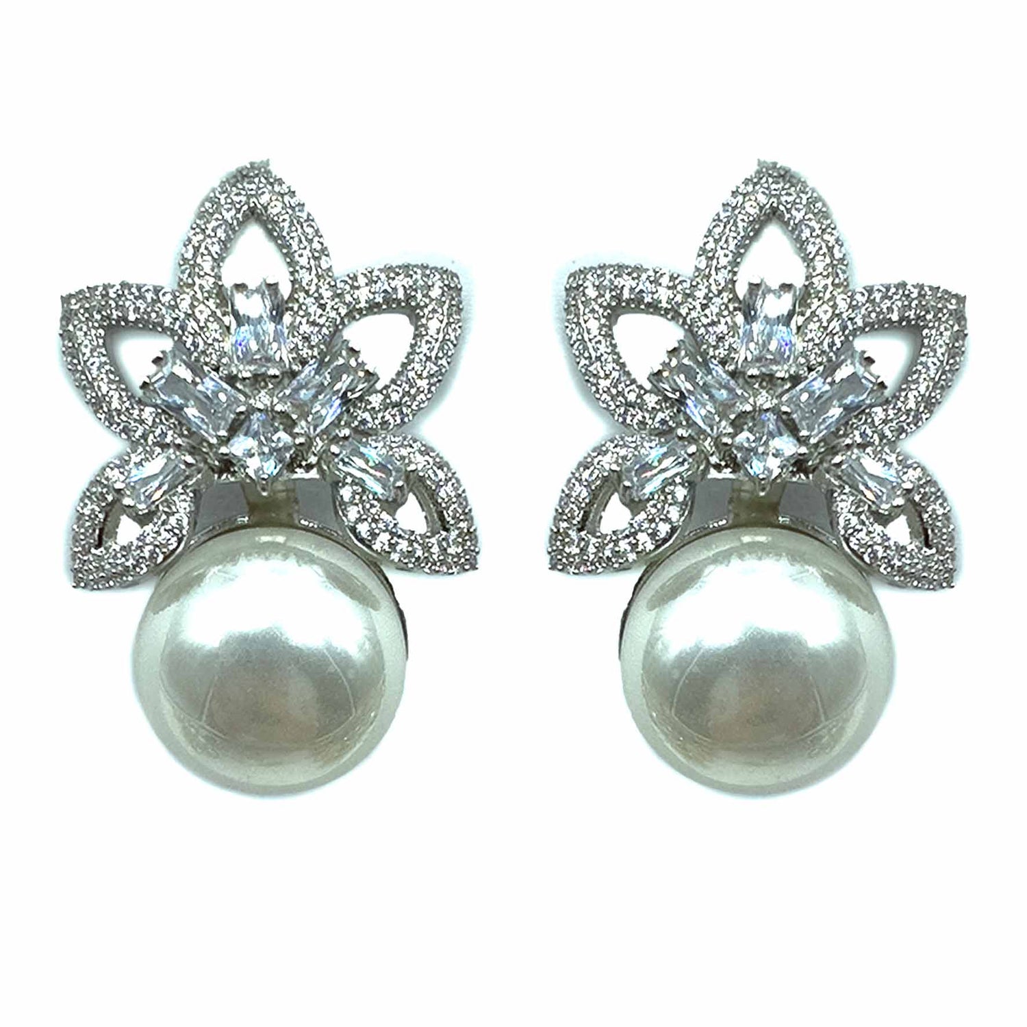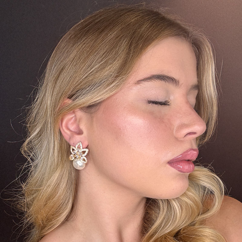 Orecchini pendenti a forma di perla big, con una stella decorata da pavè luminoso e cristalli brillanti, placcati gold/silver