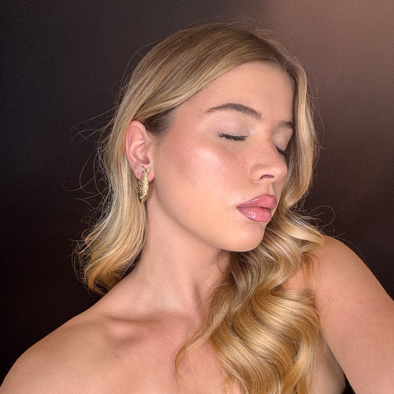 Orecchini a forma di pesce, struttura gold plated.