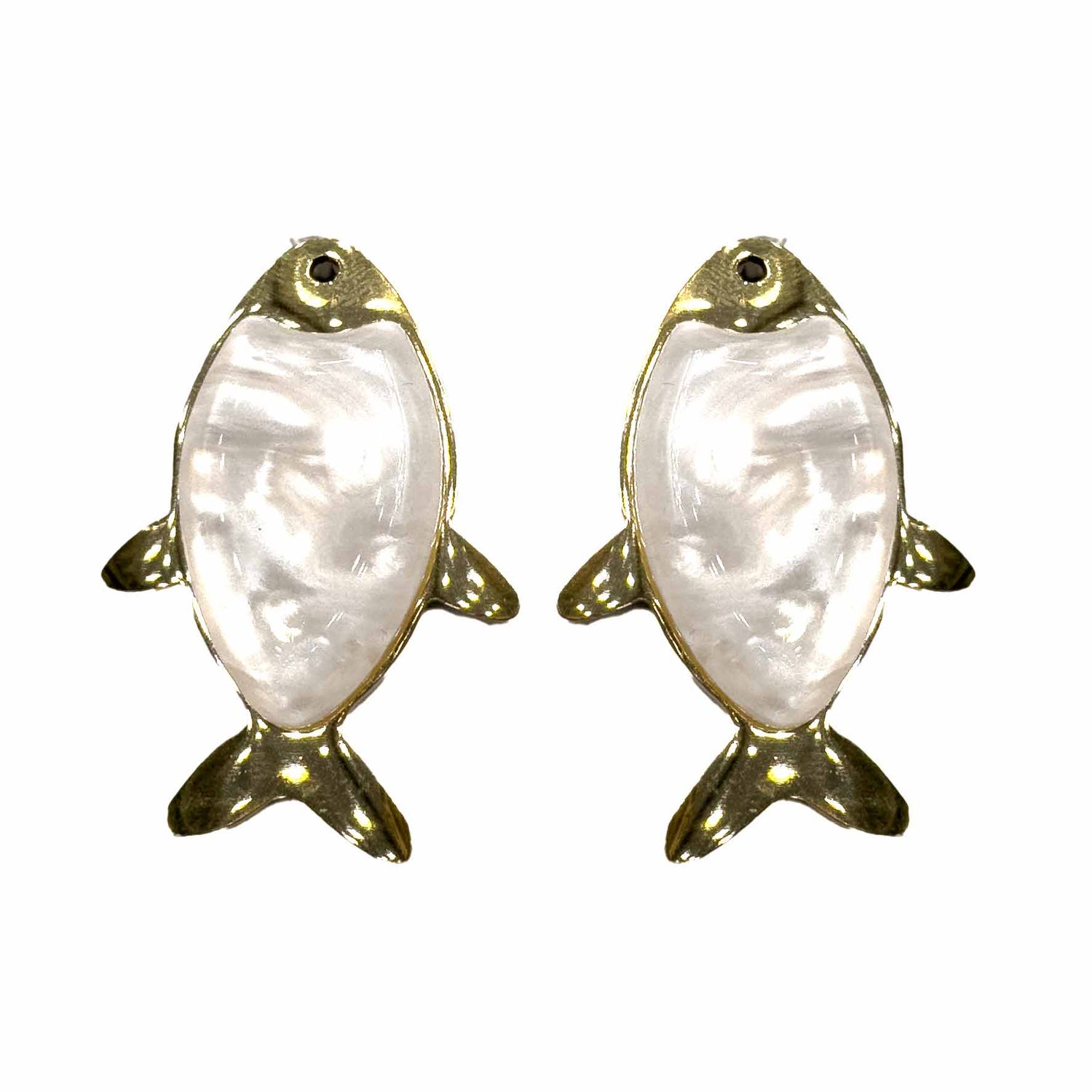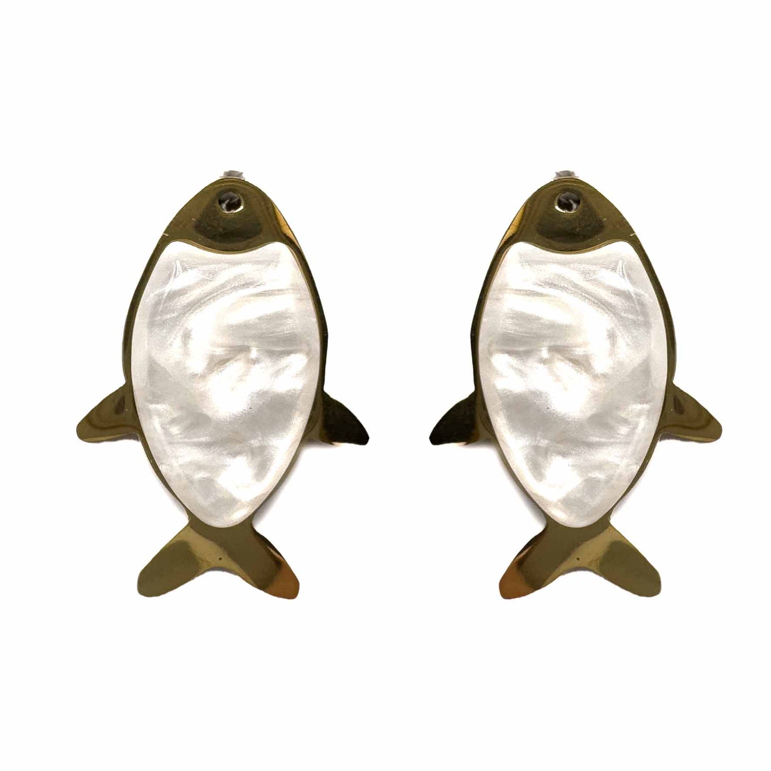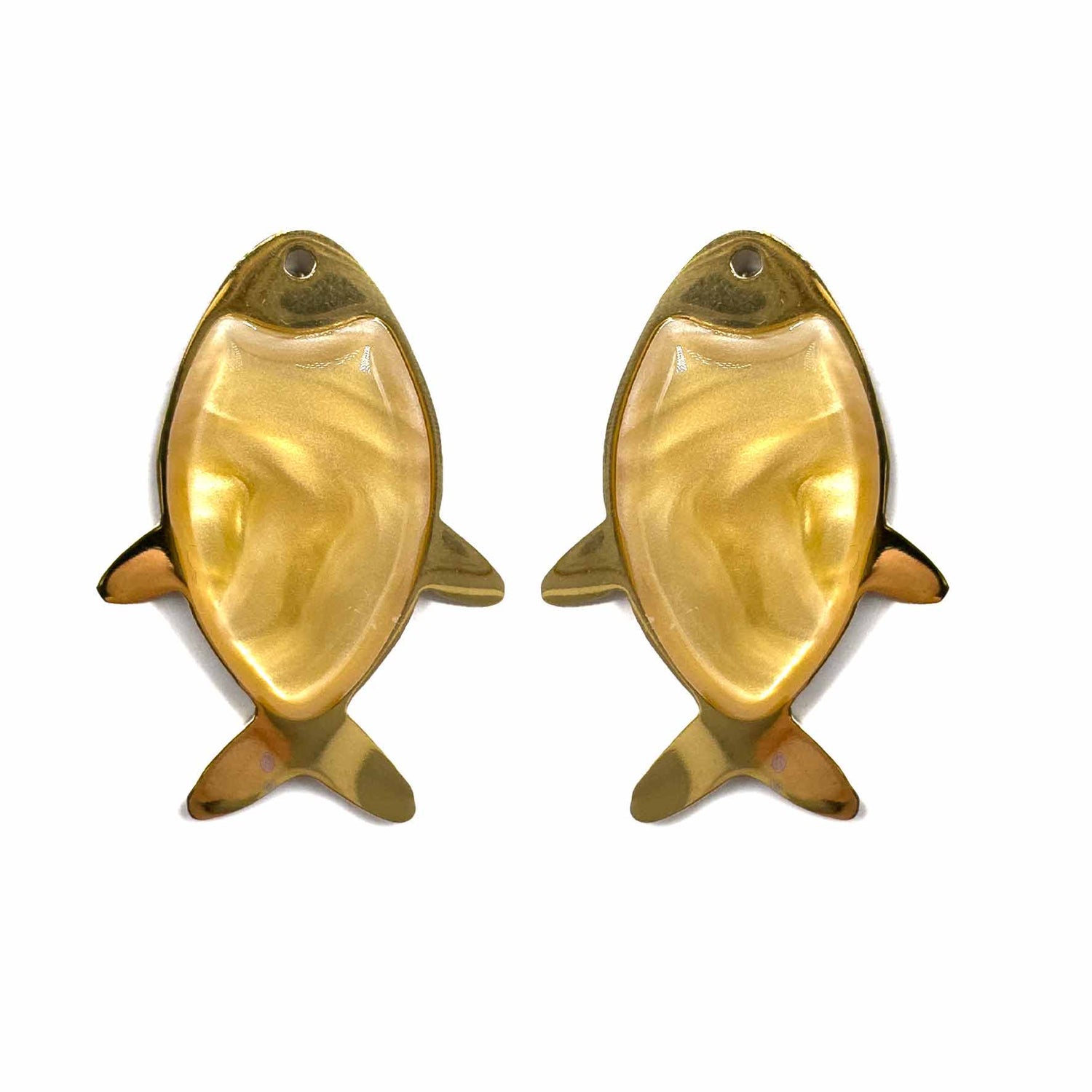 Orecchini a forma di pesciolini disponibili in vari colori con struttura in ottone gold plated e superficie a venature