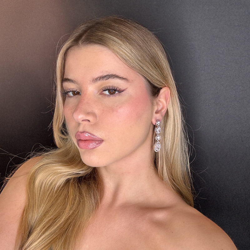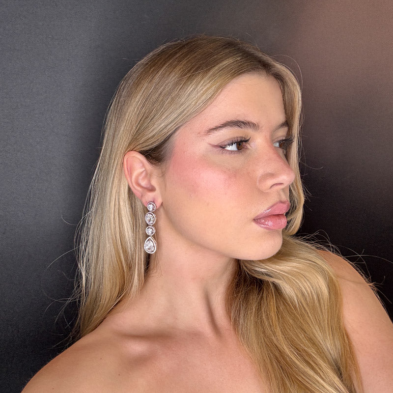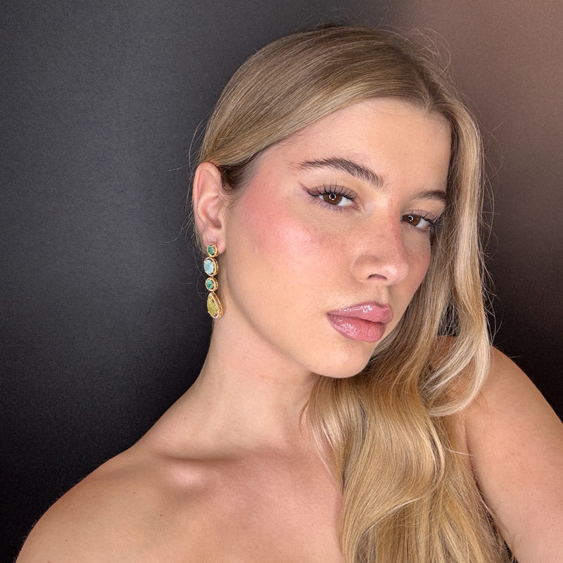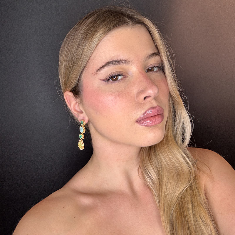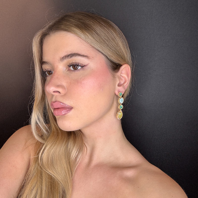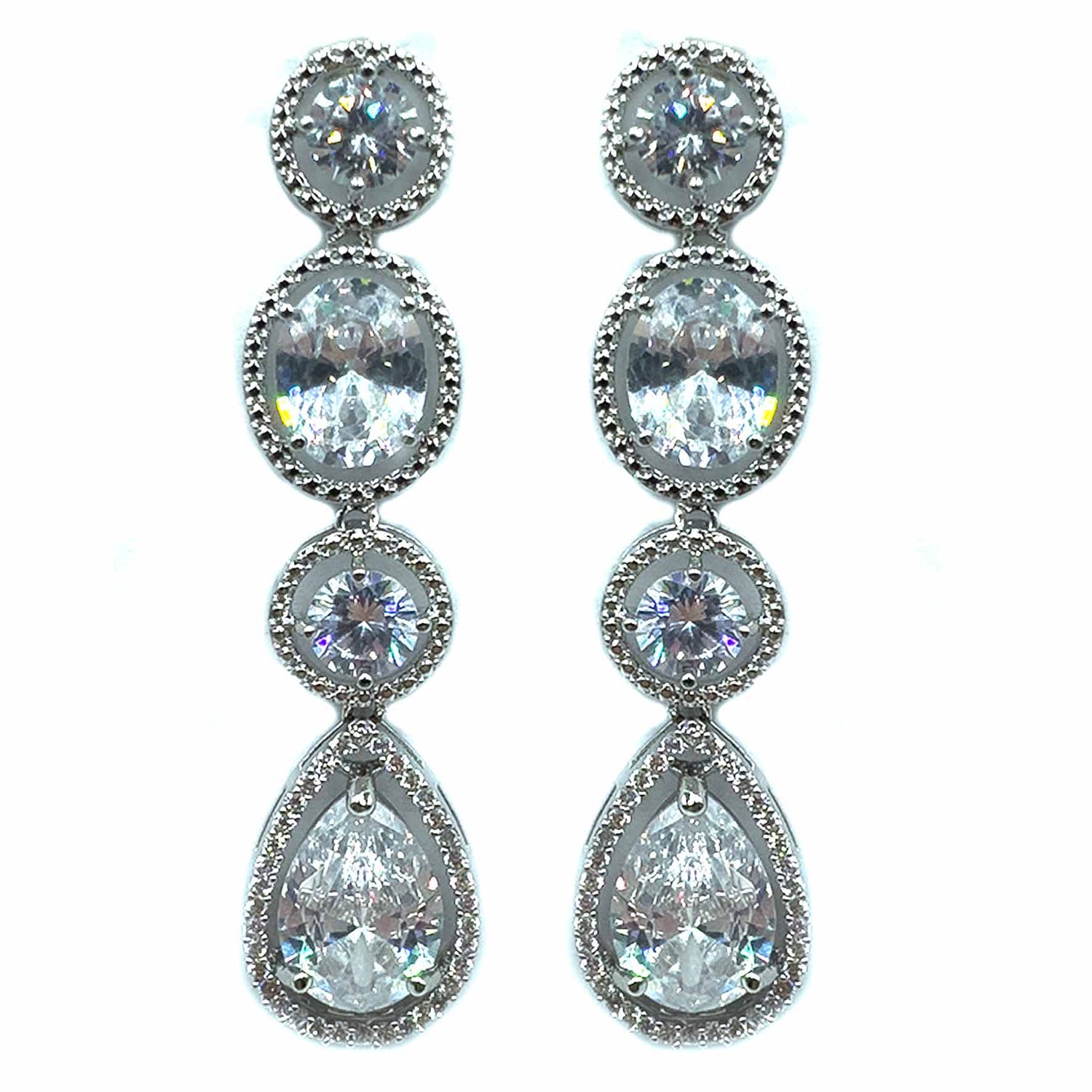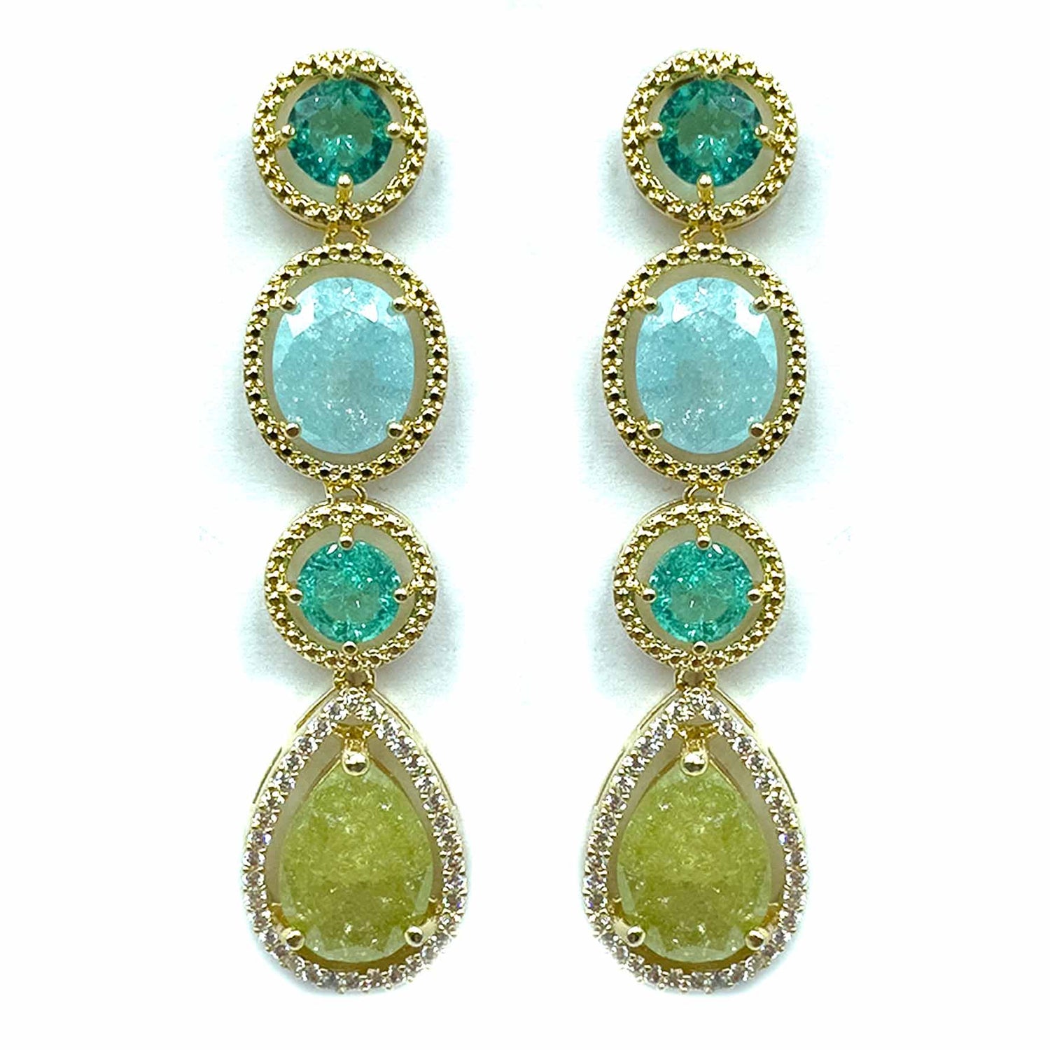 Orecchini pendenti a forma di catena di pietre colorate e cristallo, con cornice di pavè, placcati gold/silver
