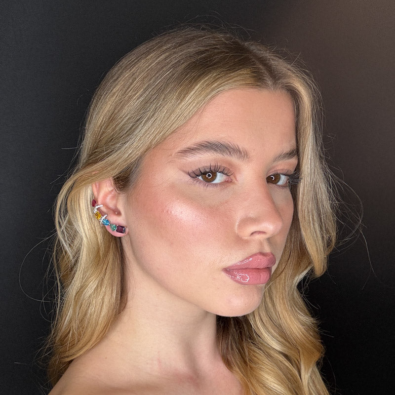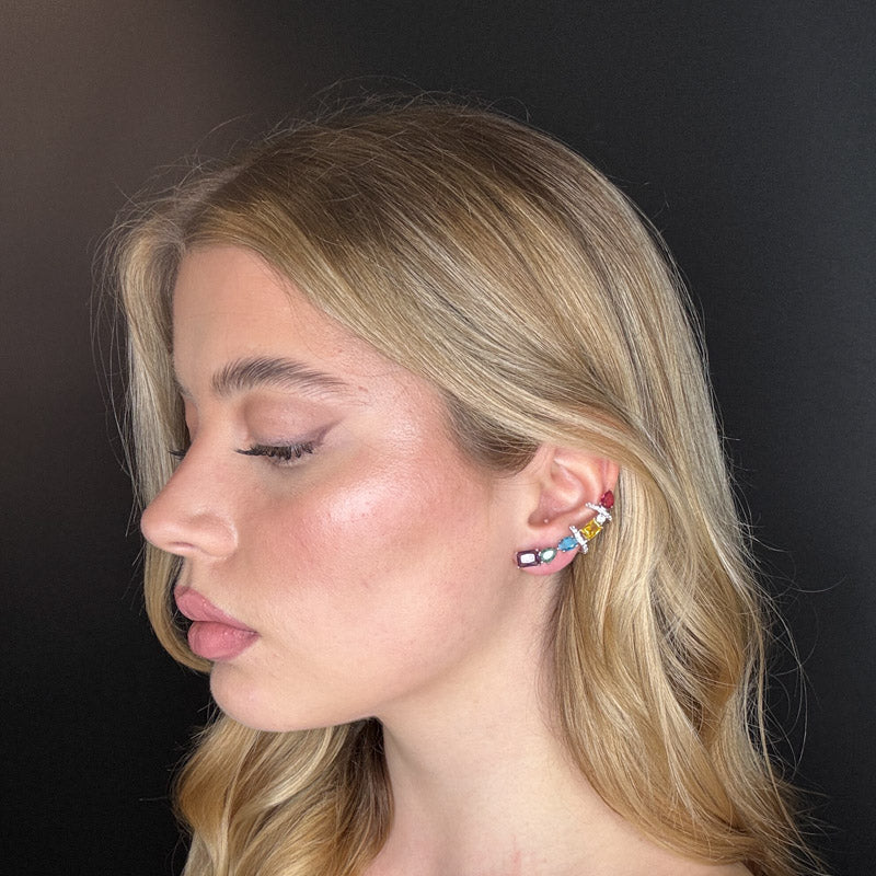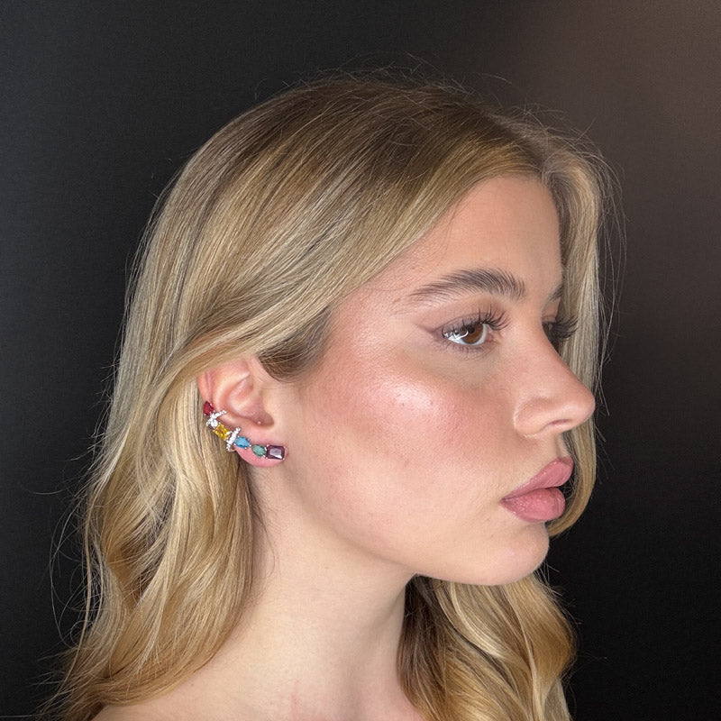Orecchini a lobo rampicanti con pietre colorate in sequenza