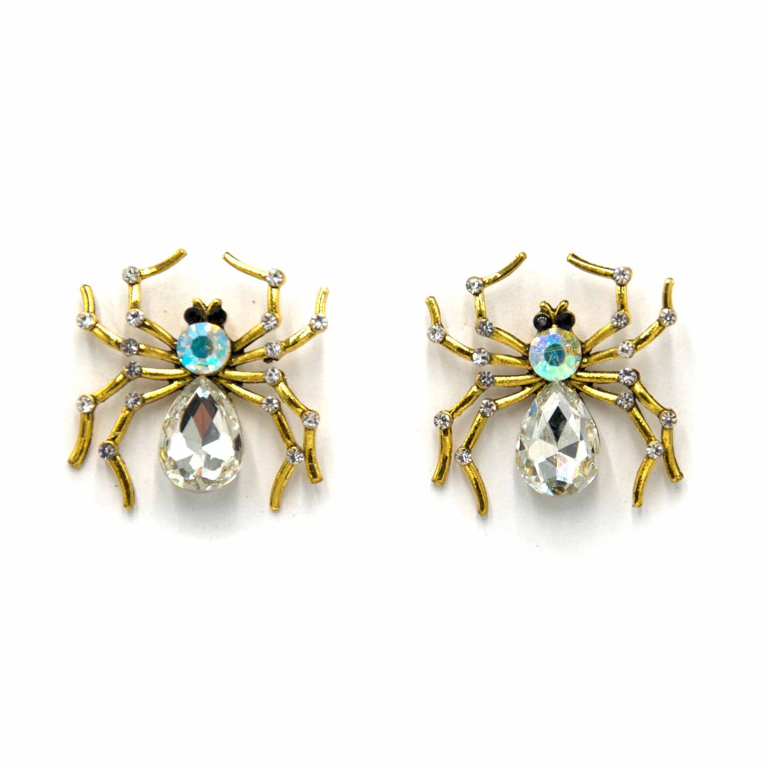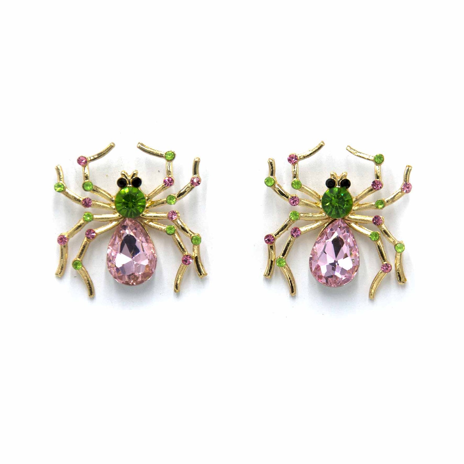 Orecchini a forma di ragnetti con zirconi e pietre colorate incastonate su tutta la superficie