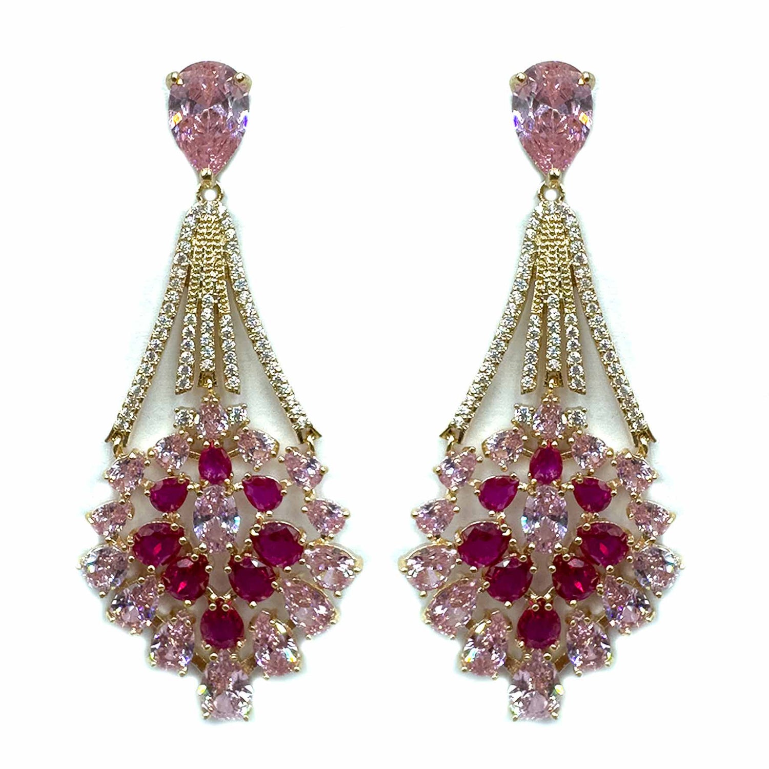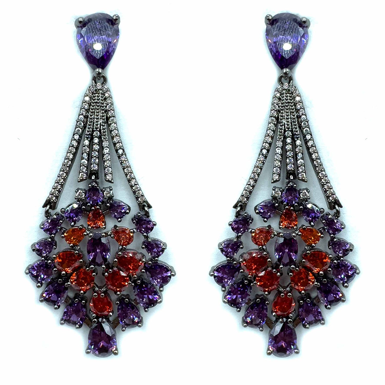 Orecchini pendenti a forma di ovale, decorati da pavè e cristalli, placcati gold/dark