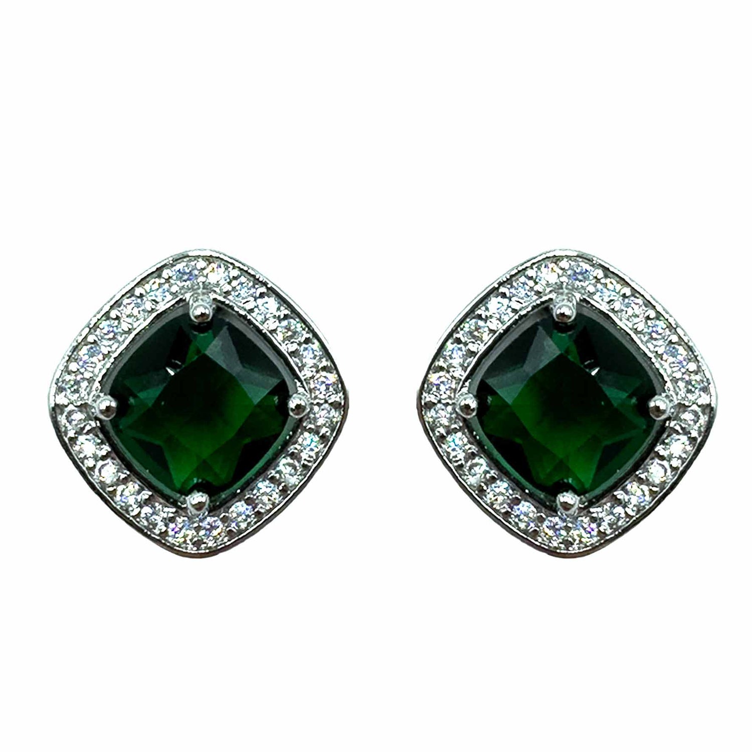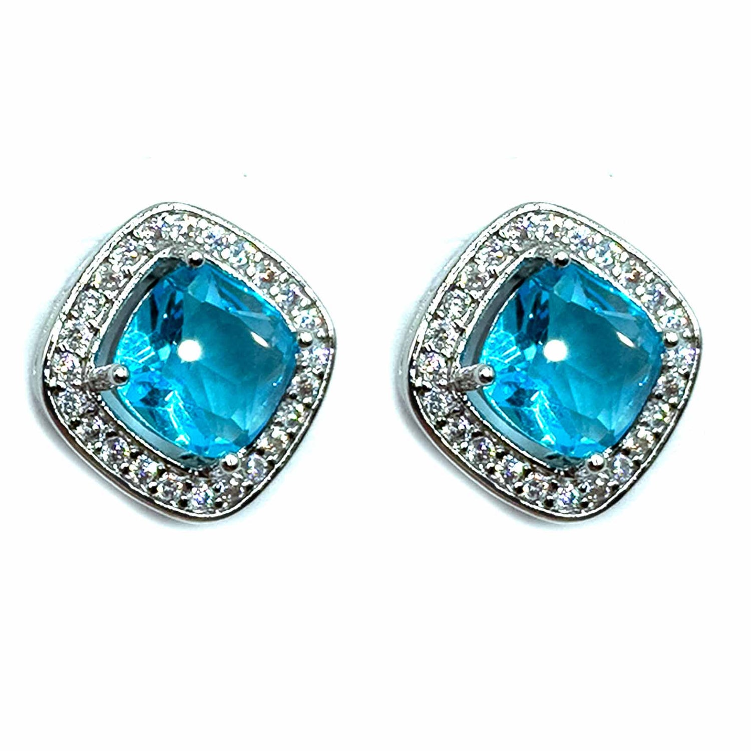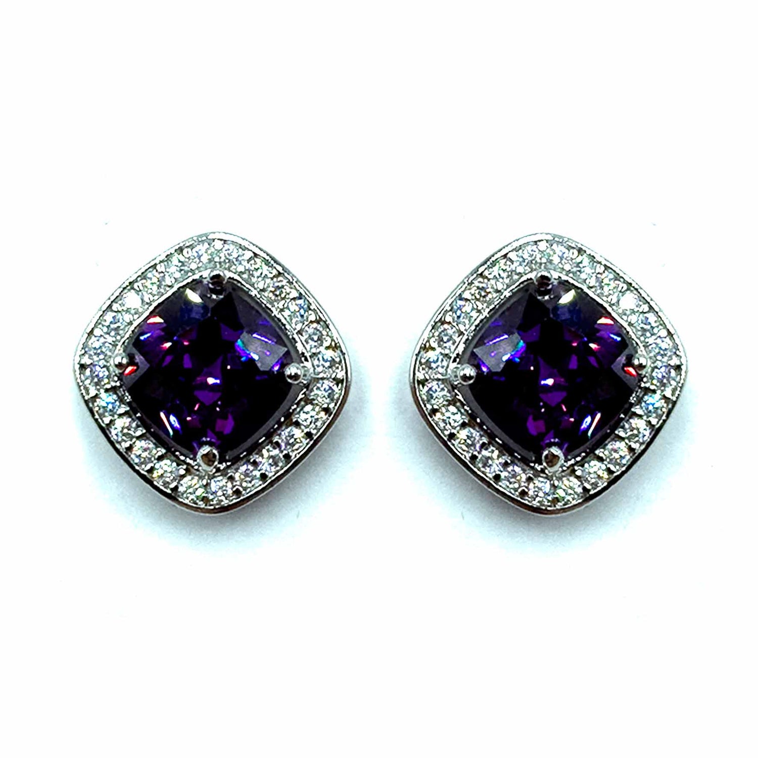 Orecchini a lobo a forma di rombo con pietra centrale disponibile in due colori e contorno di zirconi silver.