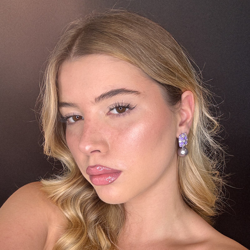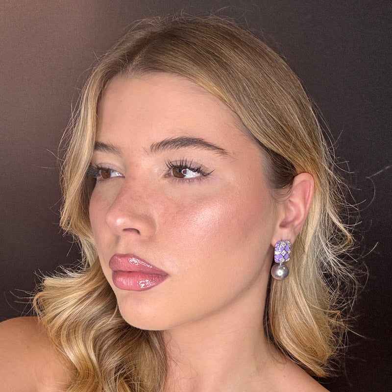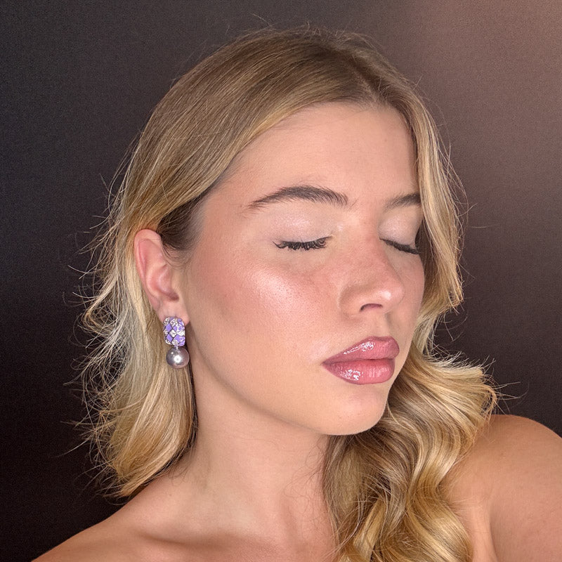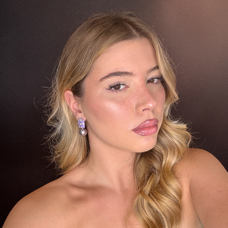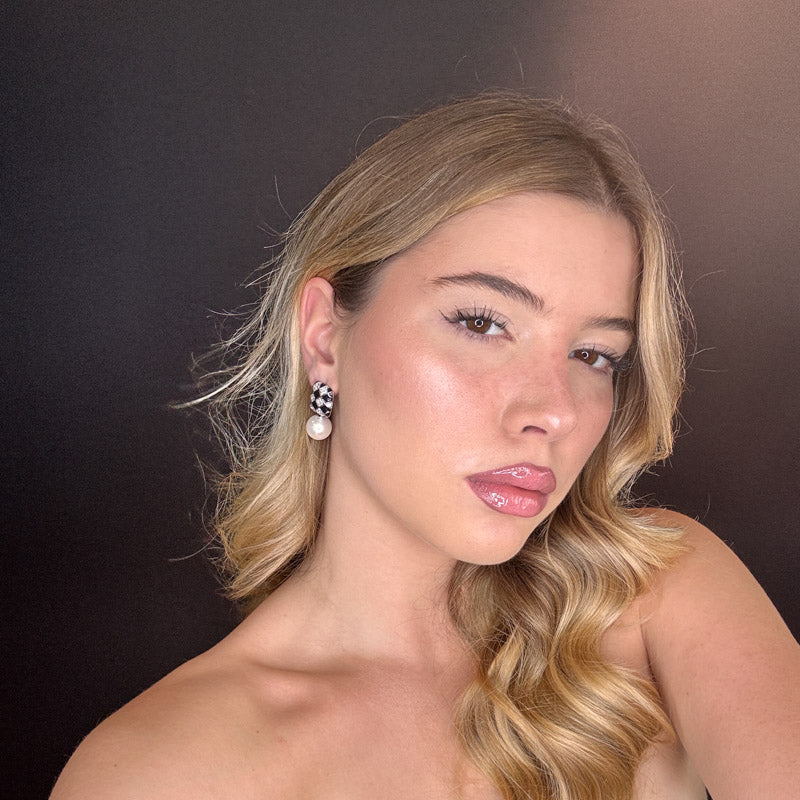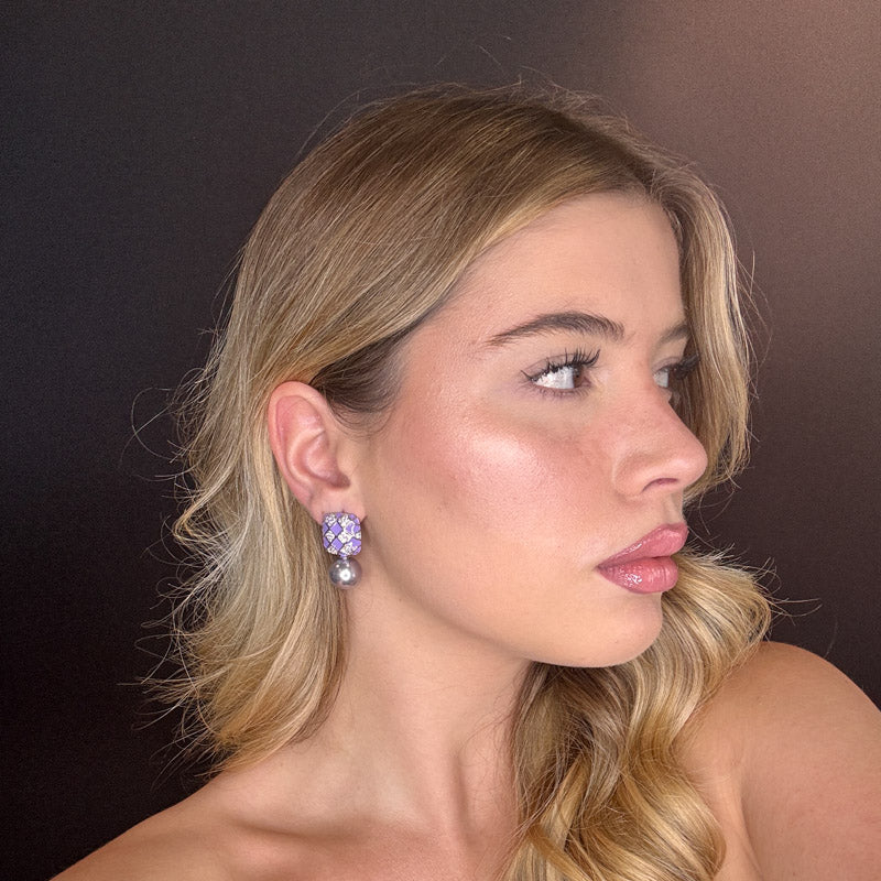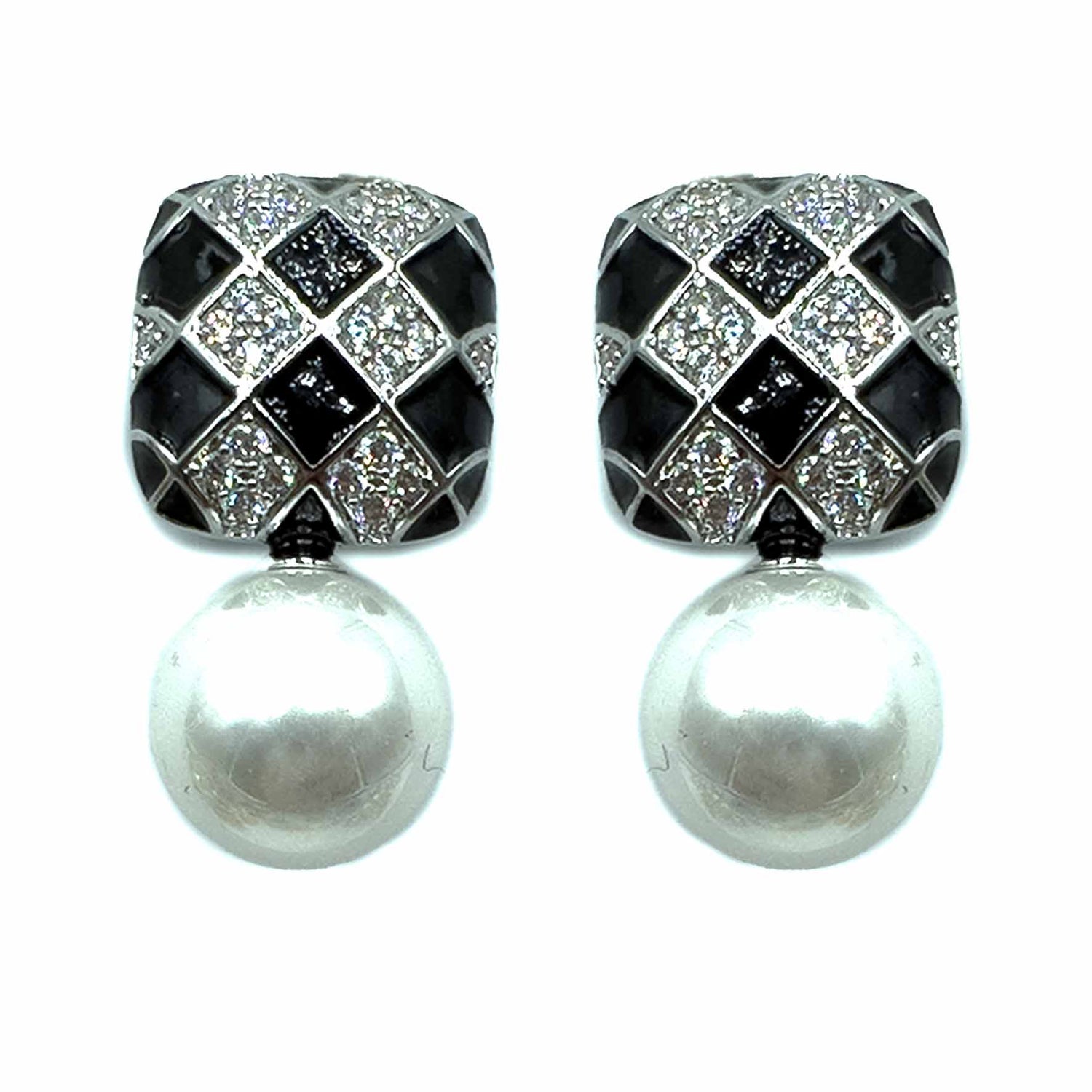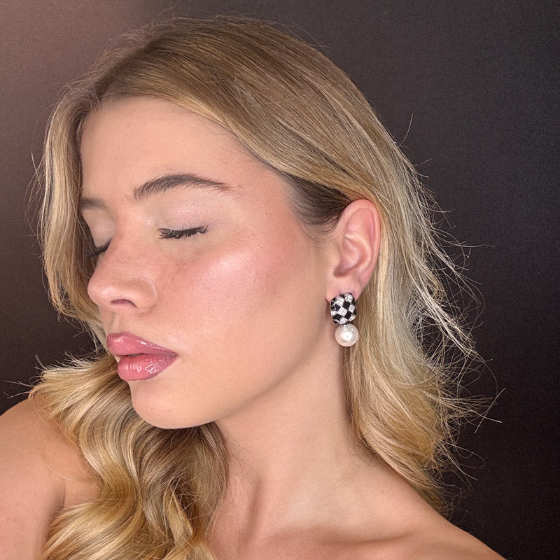 Orecchini pendenti a forma di perla con scacchiera, placcati gold/silver