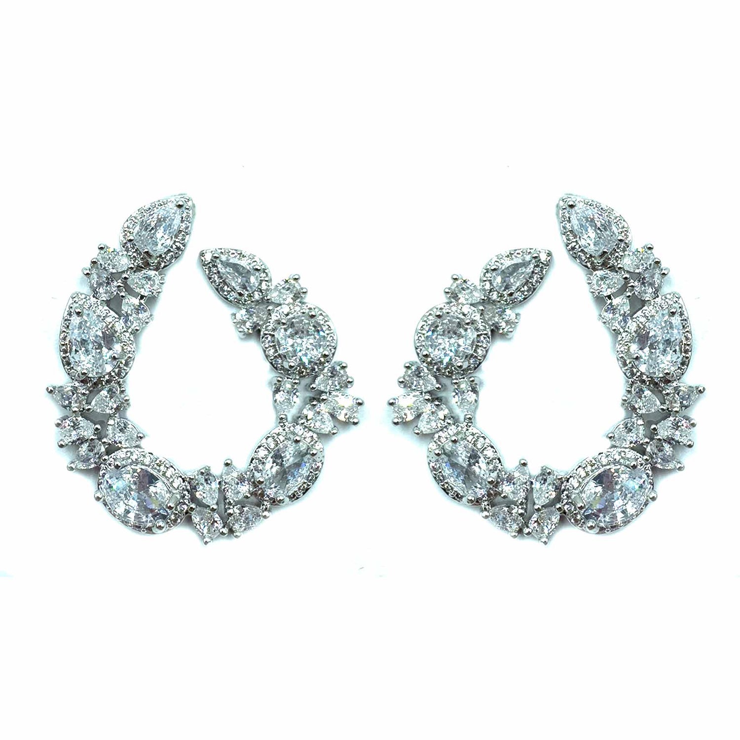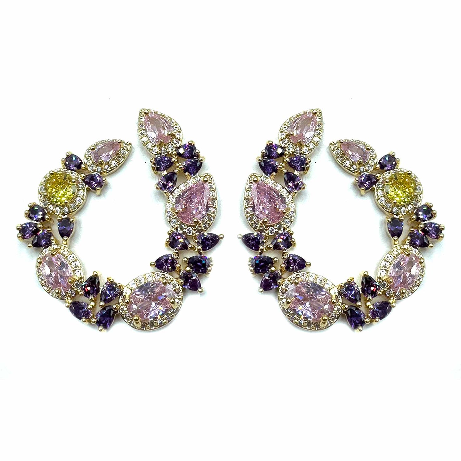 Orecchini pendenti a semicerchio con pietre colorate asimmetriche su base gold plated