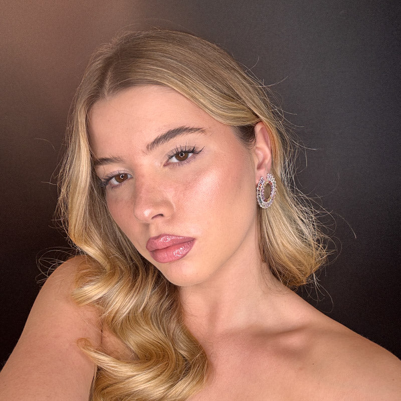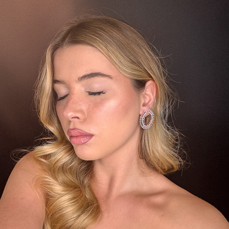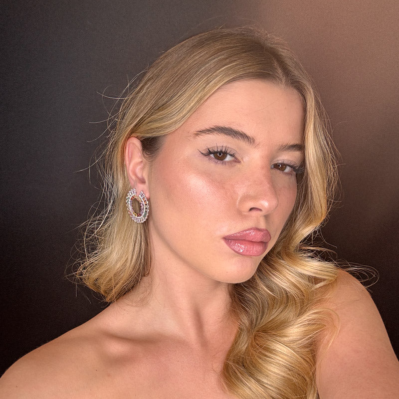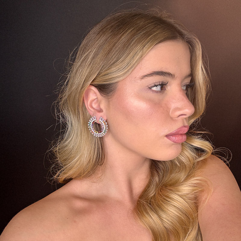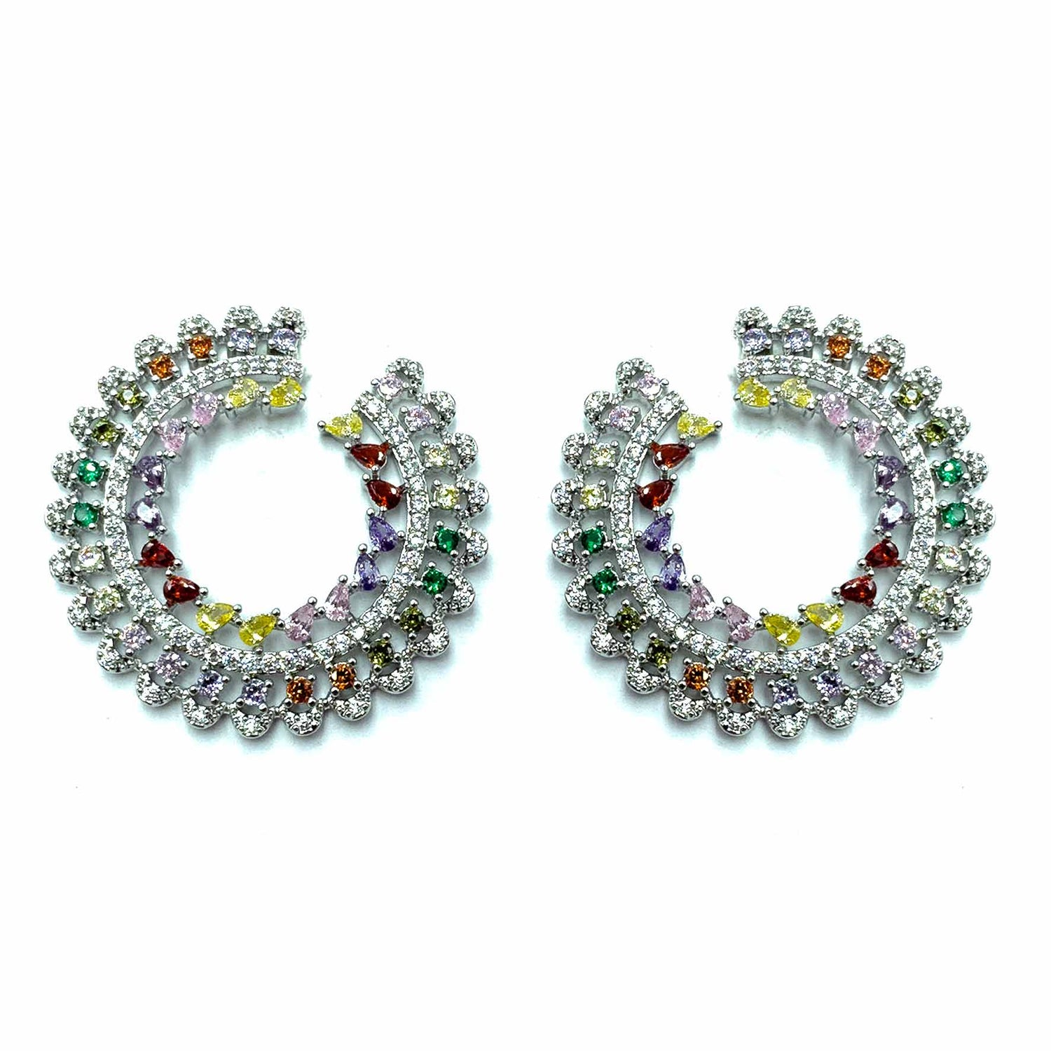 Orecchini pendenti a forma di semicerchio con pietre colorate e zirconi cristallo, placcati silver