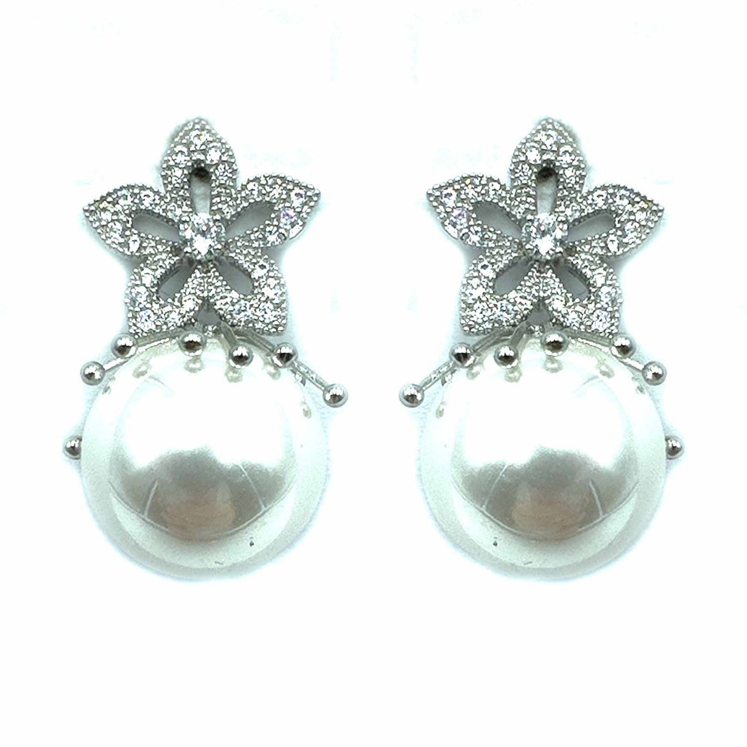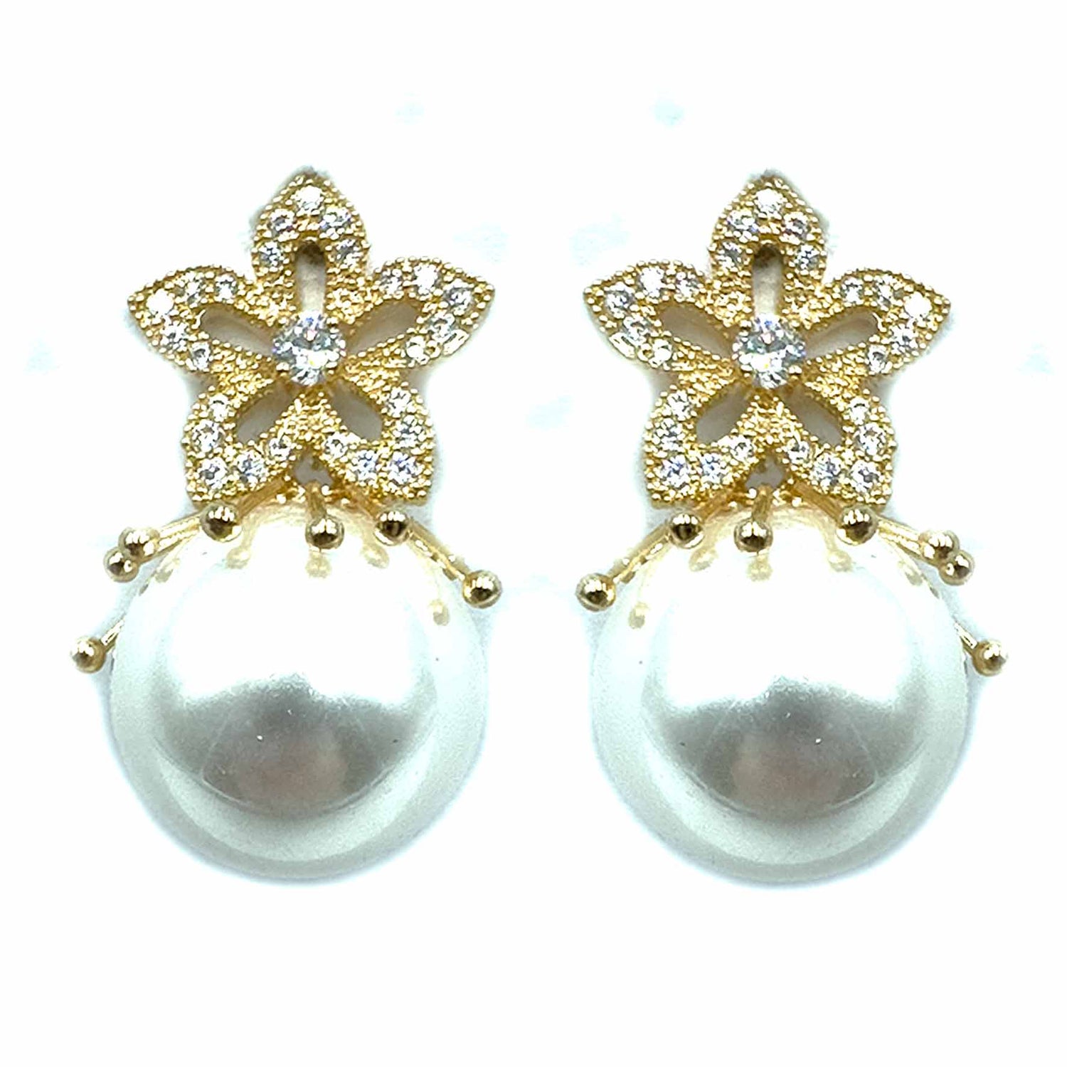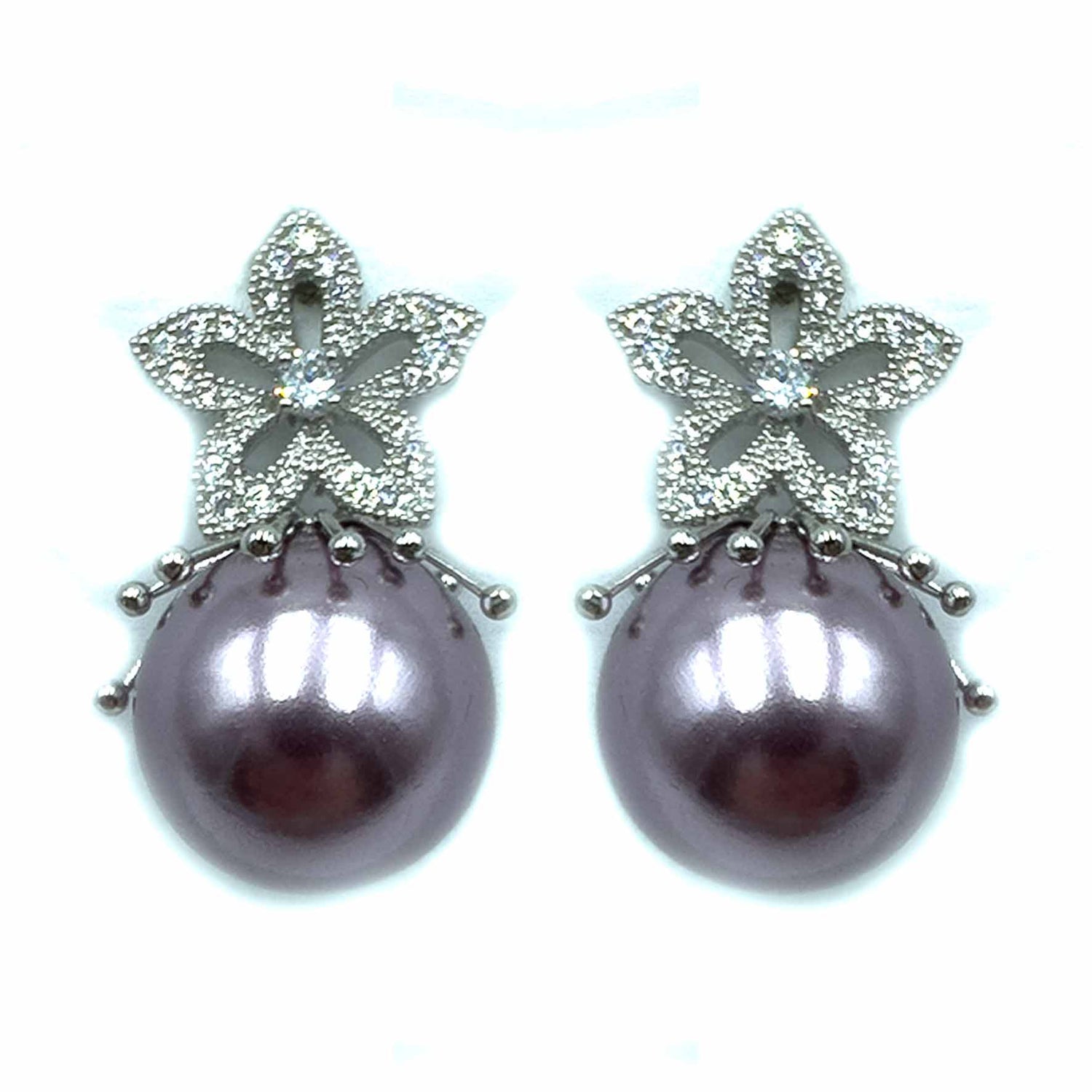 Orecchini pendenti a forma di stella di pavè con perlina colorata, placcati gold/silver