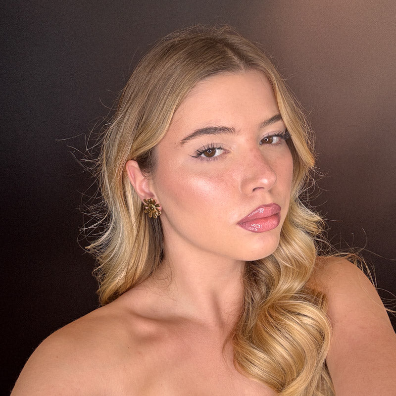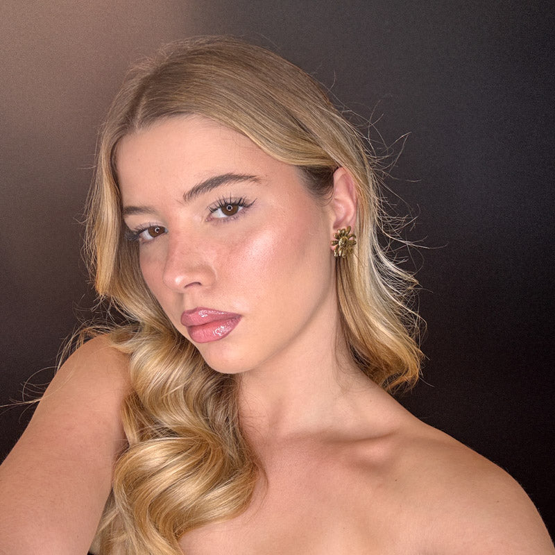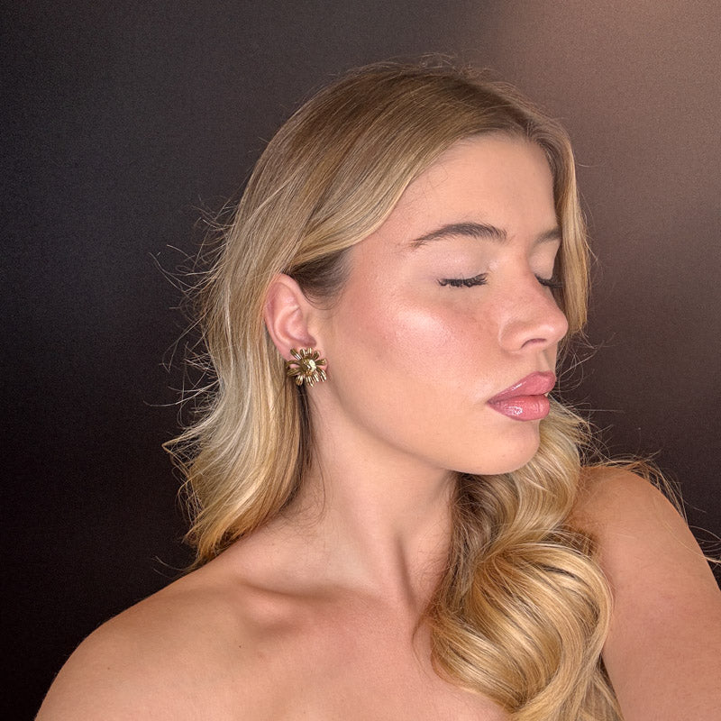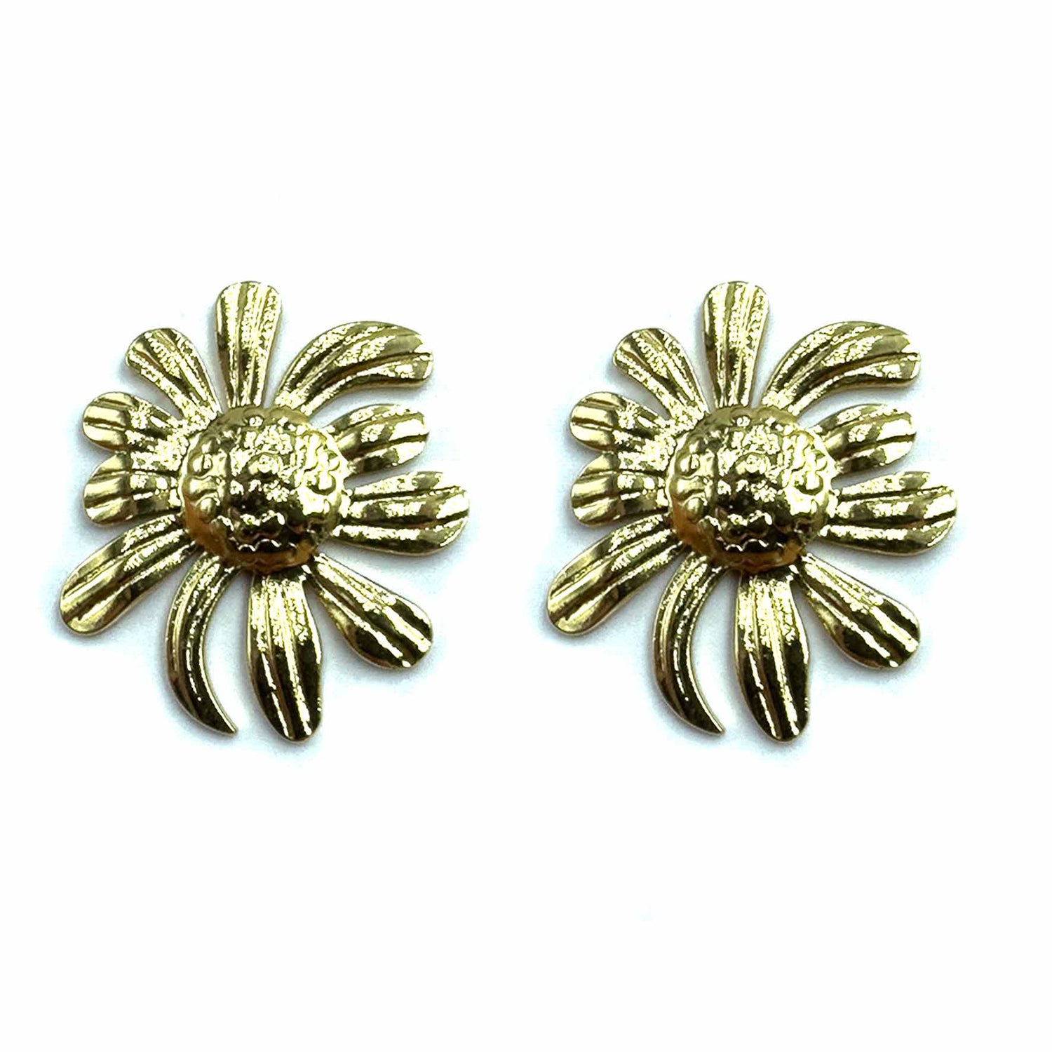 Orecchini a forma di girasole, struttura gold/silver plated.