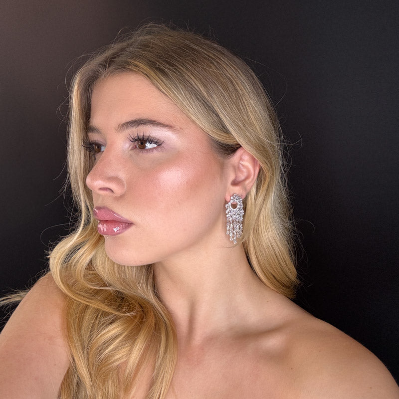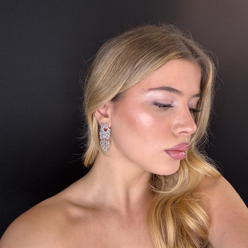 Orecchini pendenti con tripudio di pietre di cristallo incastonate